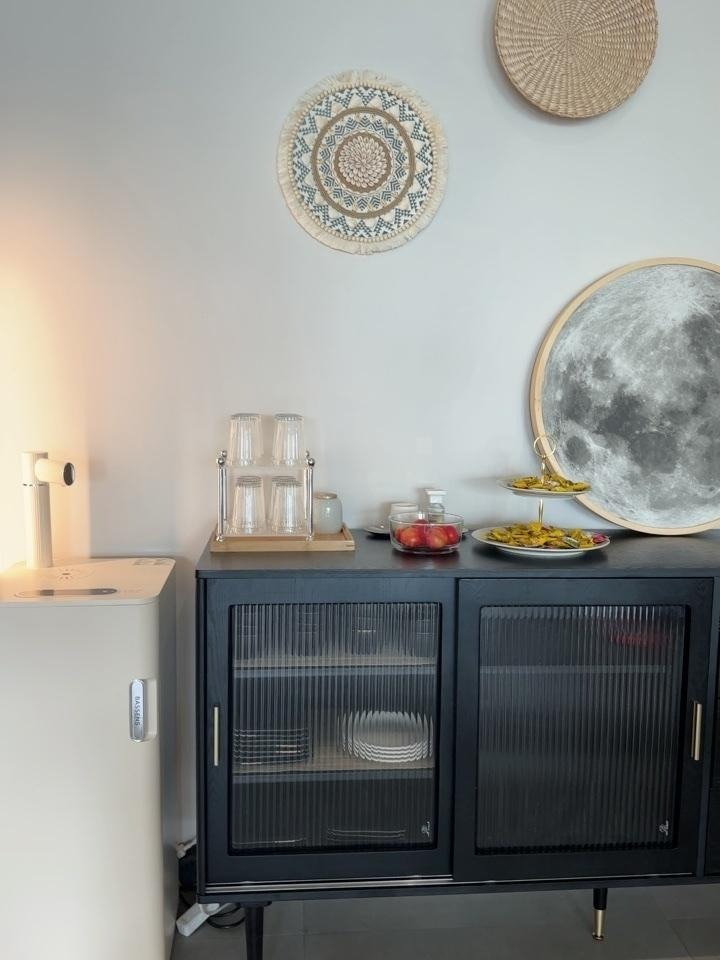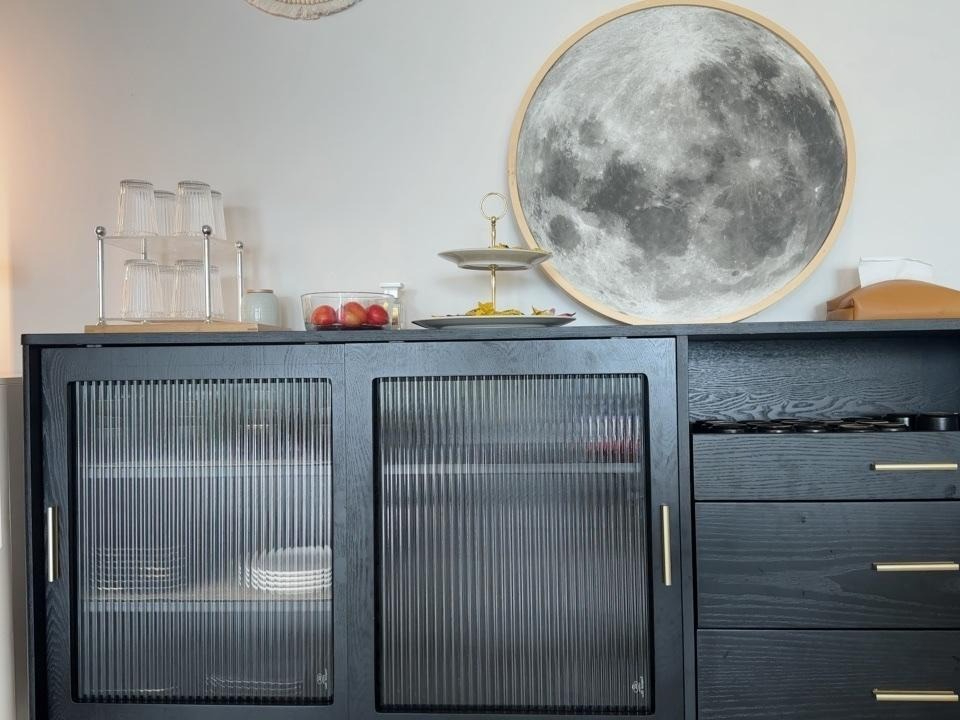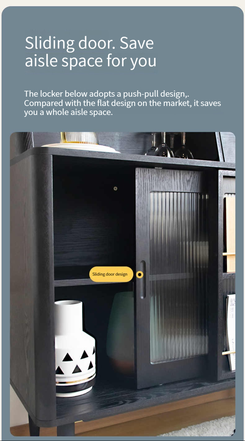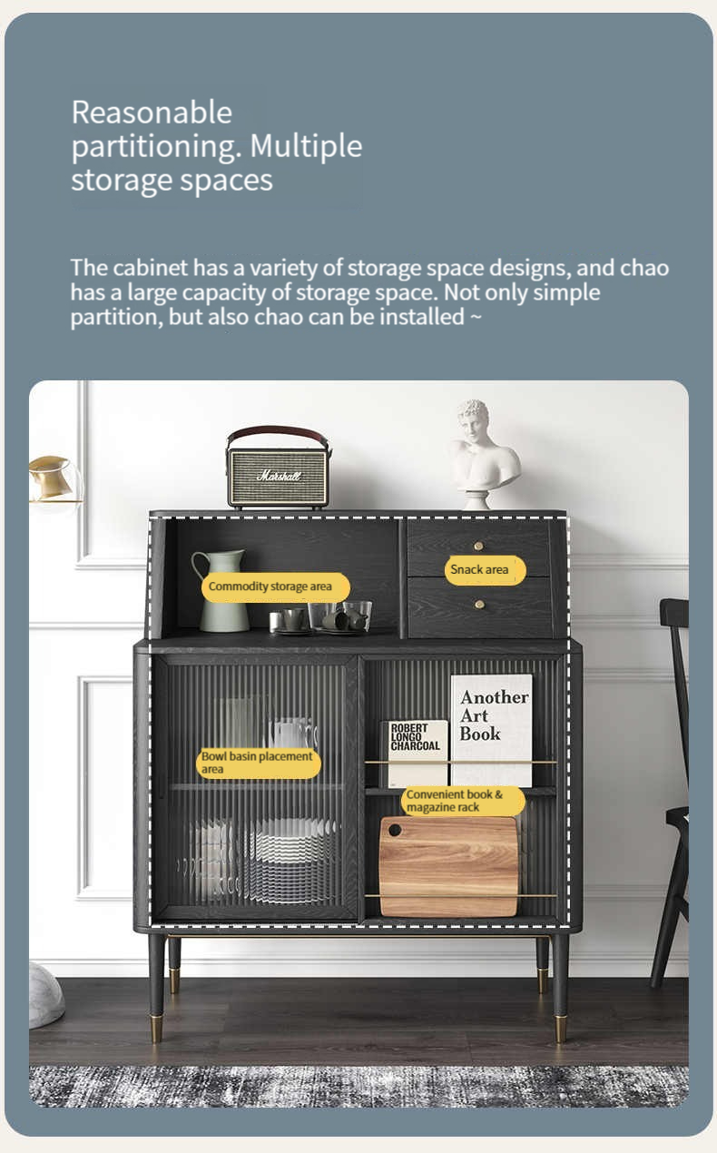 Nordic sideboard, modern and minimalist dining room, living room, boxwood color, wall facing, light luxury storage cabinet, glass door storage cabinet