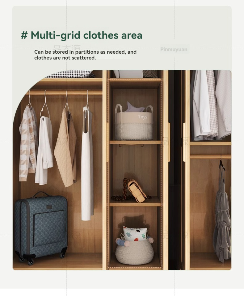 Nordic solid wood wardrobe small household wardrobe modern simple bedroom floor storage cabinet multi-door solid wood cabinet-Smart-Living Nordic solid wood wardrobe small household wardrobe modern simple bedroom floor storage cabinet multi-door solid wood cabinet-Smart-Living
