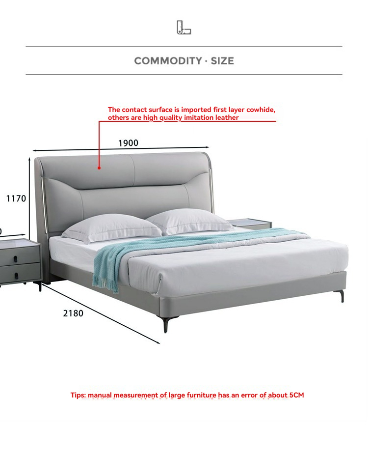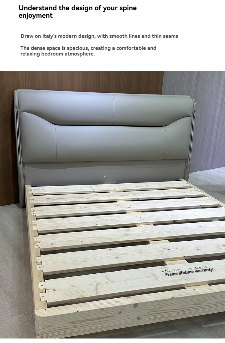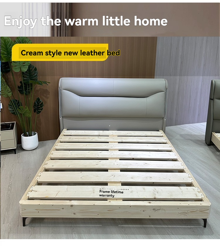 PRE ORDER / BTO PACKAGE - A - BED FRAME - Modern simple leather headboard cowhide guest bedroom and second bedroom cream style leather