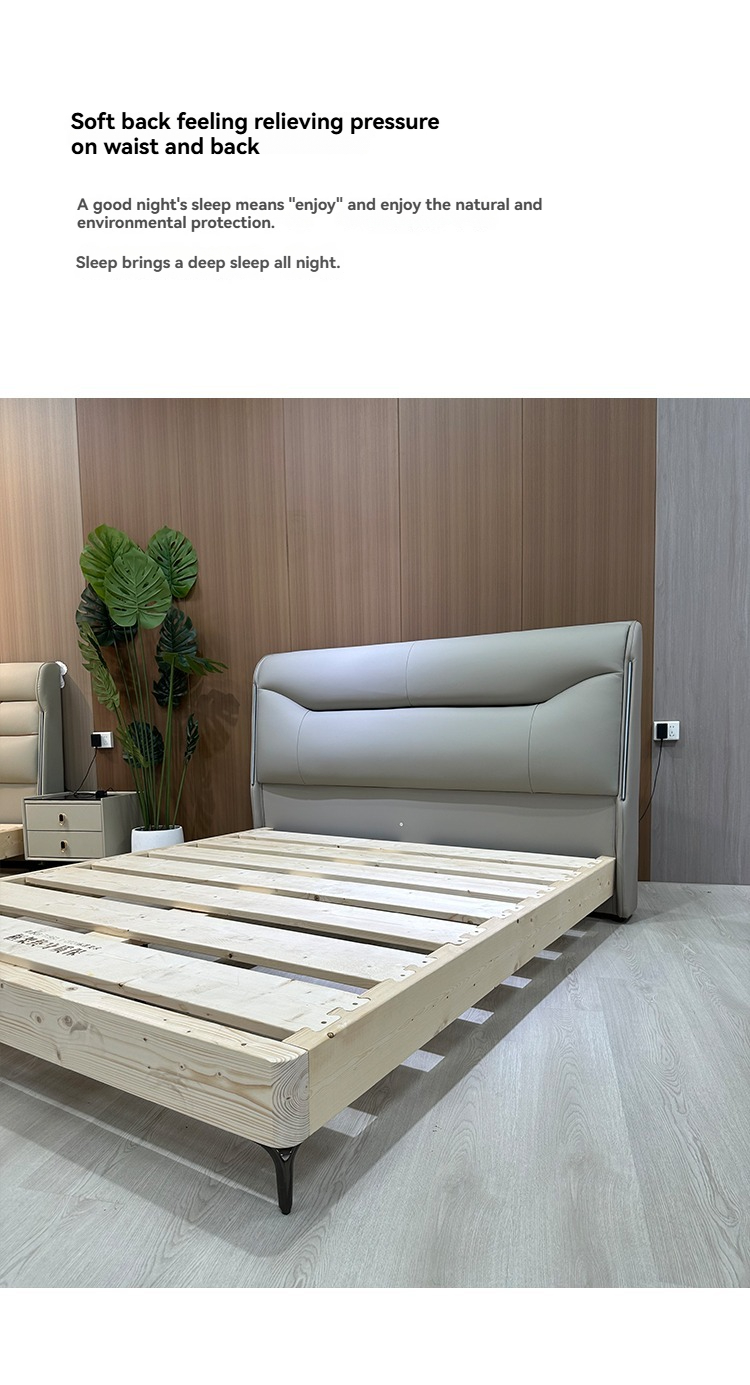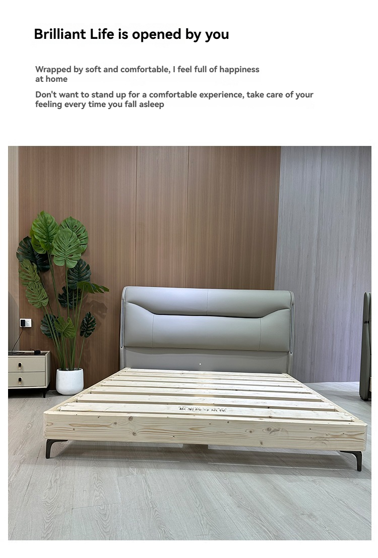 PRE ORDER / BTO PACKAGE - A - BED FRAME - Modern simple leather headboard cowhide guest bedroom and second bedroom cream style leather PRE ORDER / BTO PACKAGE - A - BED FRAME - Modern simple leather headboard cowhide guest bedroom and second bedroom cream style leather