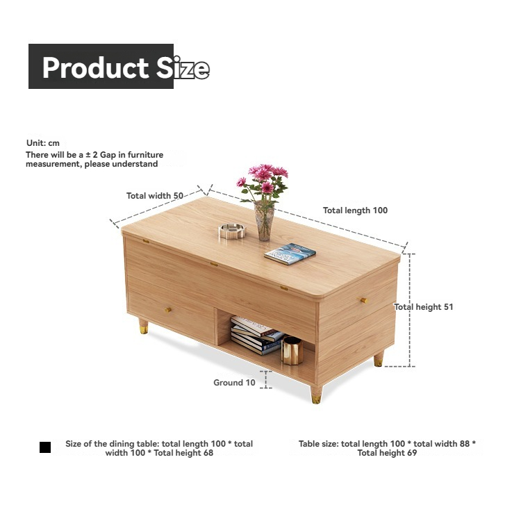 PRE ORDER / BTO PACKAGE - VR - Coffee table -S4014# 1 Meter Lift-up Coffee Table Convertible to Dining Table - Multifunctional, Simple & Modern Foldable 2-in-1 Nordic Living Room Furniture