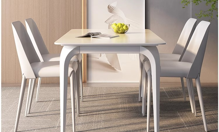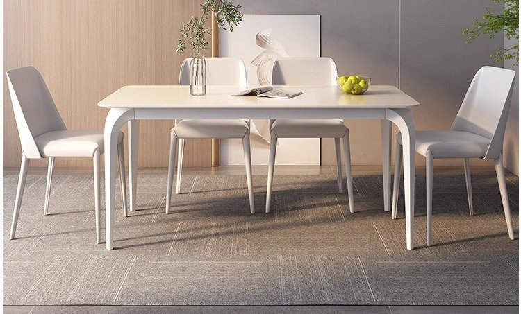 PRE ORDER / BTO PACKAGE - VR - Dinning Table - FD-C16 Cream-style Pure White Marble Dining Table and Chairs - Luxury Italian-inspired Rectangular Viral New Design Dining Set
