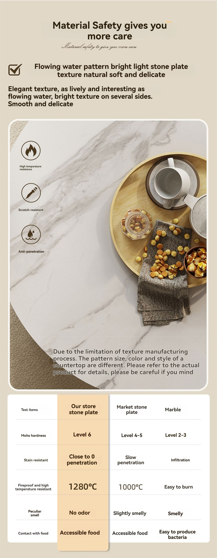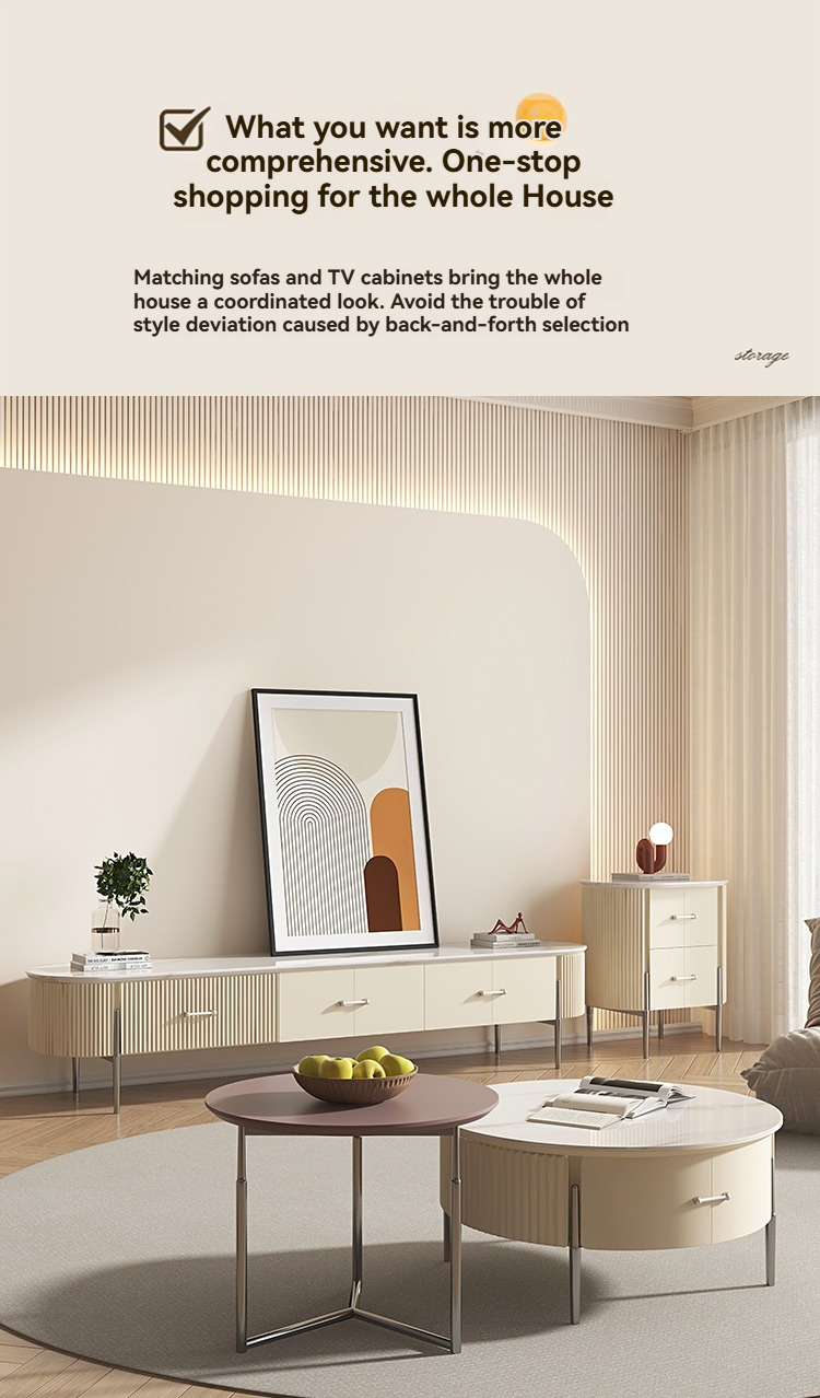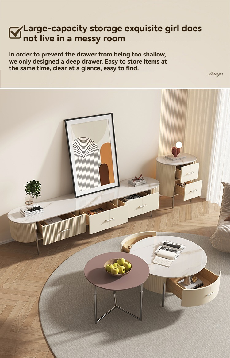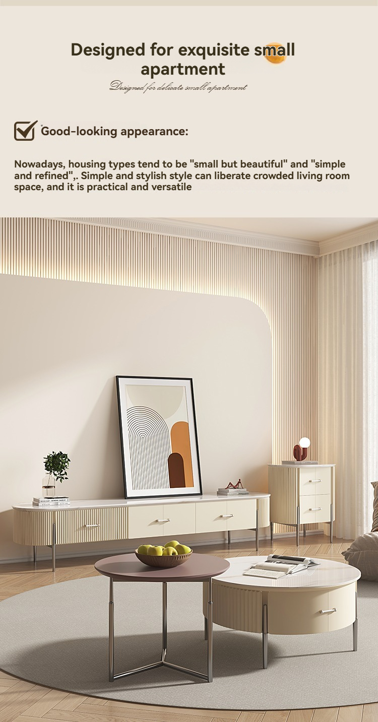 PRE-ORDER Rock plate coffee table small apartment cream style living room home size circle combination