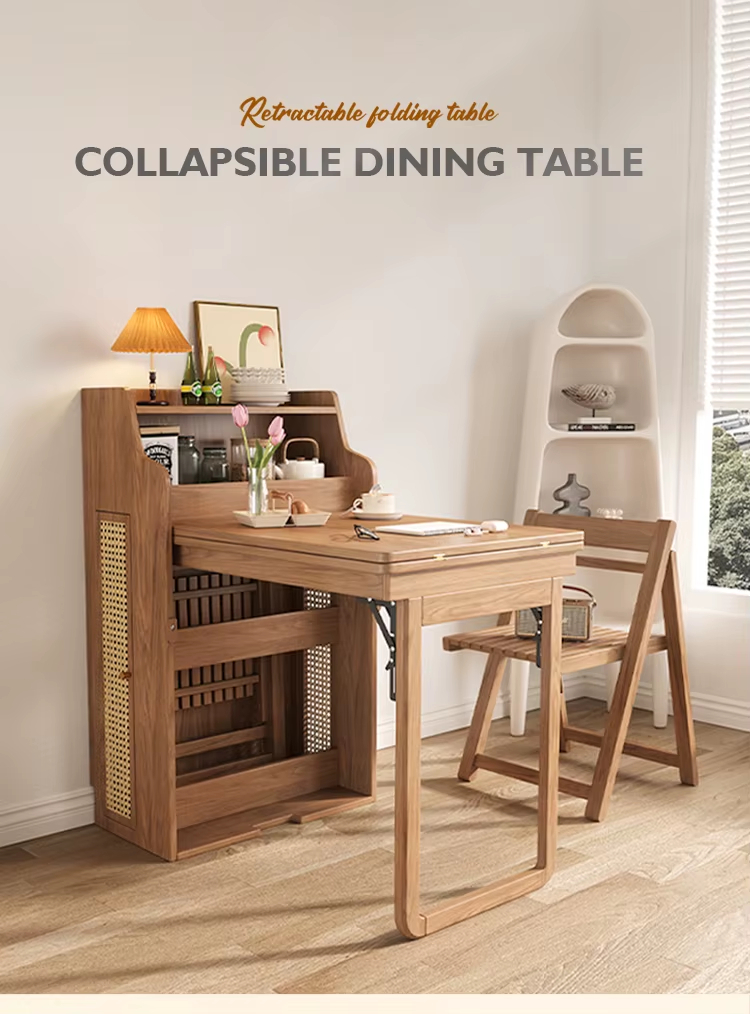 [PRE-ORDER] Solid Wood Folding Table Small Household Telescopic Dining Table