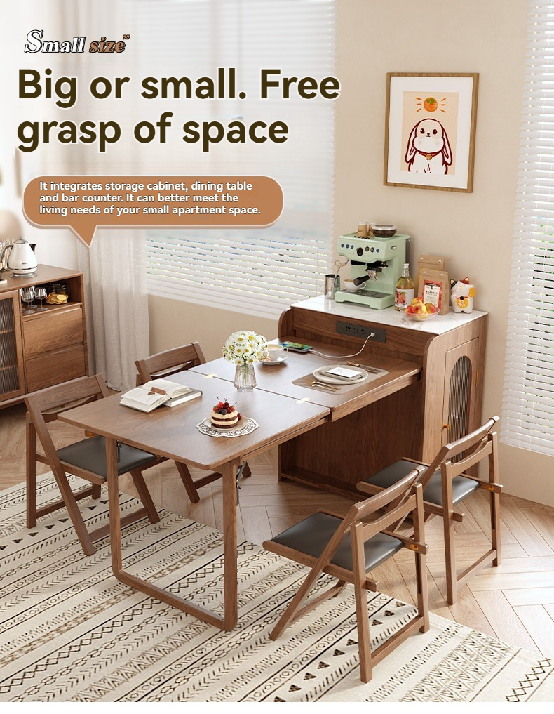 PRE-ORDER Solid wood home island dining table integrated retractable home small apartment dining table and chair combination with a Dining Side Cabinet