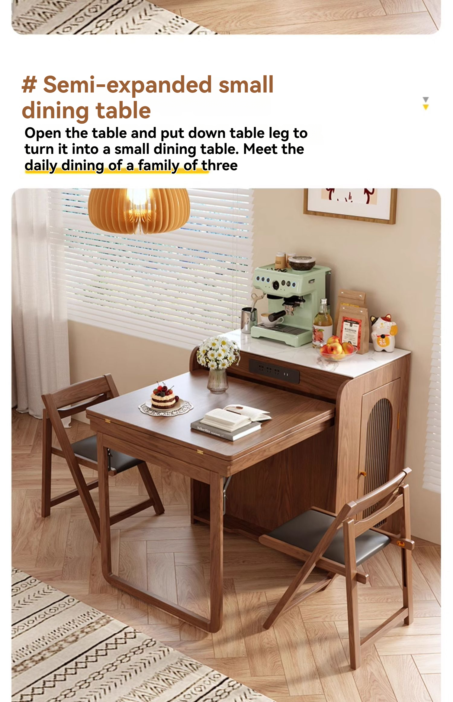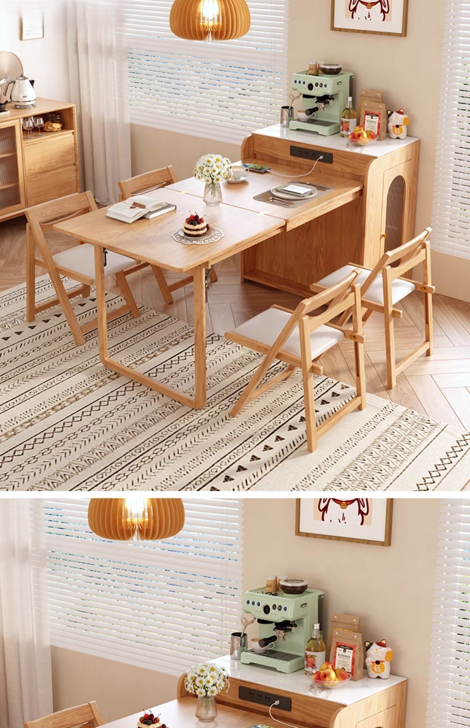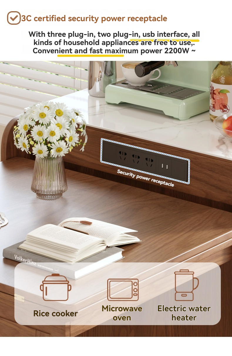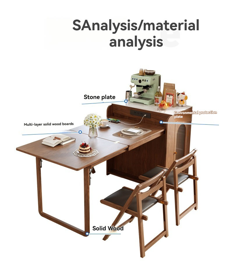 PRE-ORDER Solid wood home island dining table integrated retractable home small apartment dining table and chair combination with a Dining Side Cabinet PRE-ORDER Solid wood home island dining table integrated retractable home small apartment dining table and chair combination with a Dining Side Cabinet
