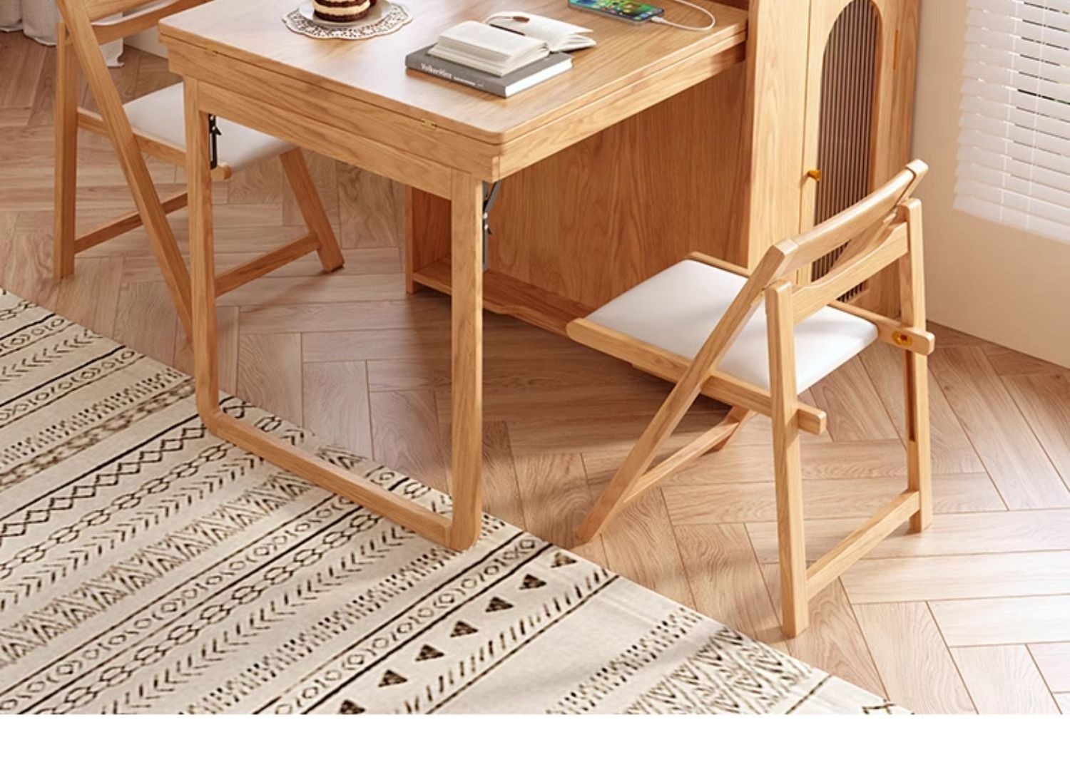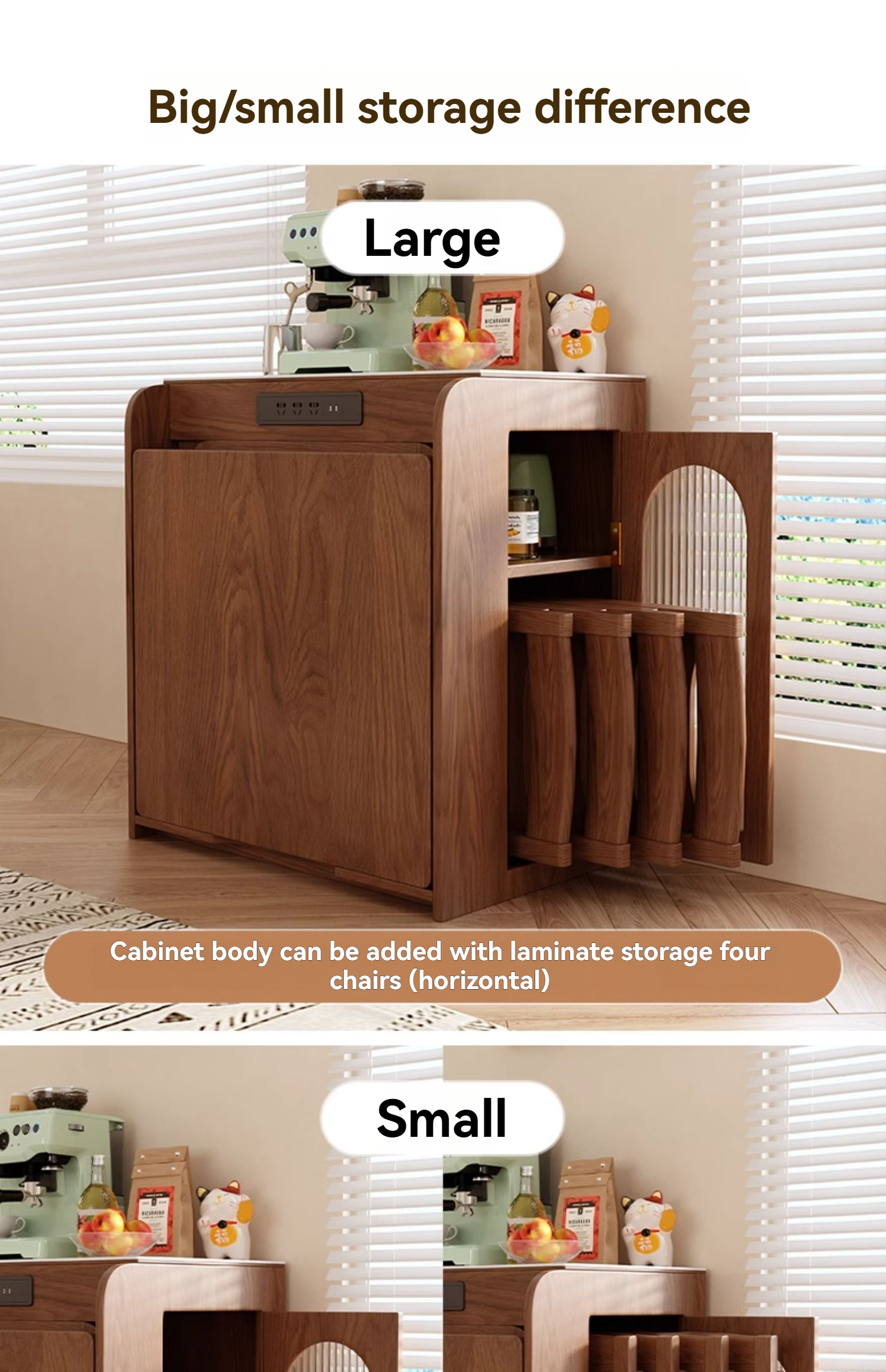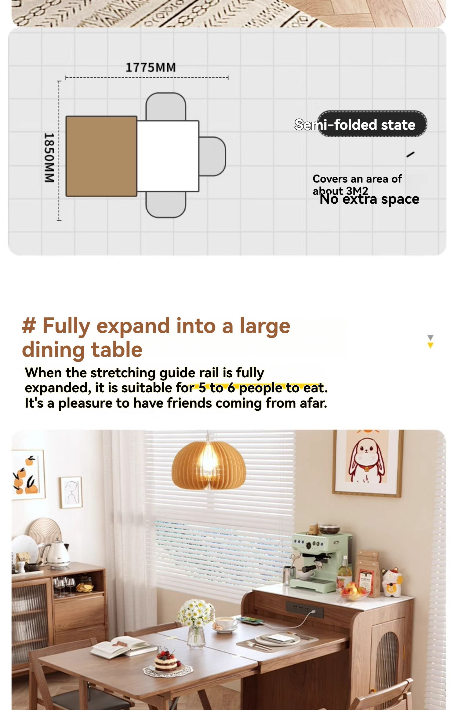 PRE-ORDER Solid wood home island dining table integrated retractable home small apartment dining table and chair combination with a Dining Side Cabinet PRE-ORDER Solid wood home island dining table integrated retractable home small apartment dining table and chair combination with a Dining Side Cabinet