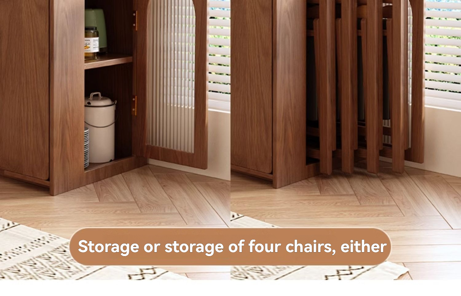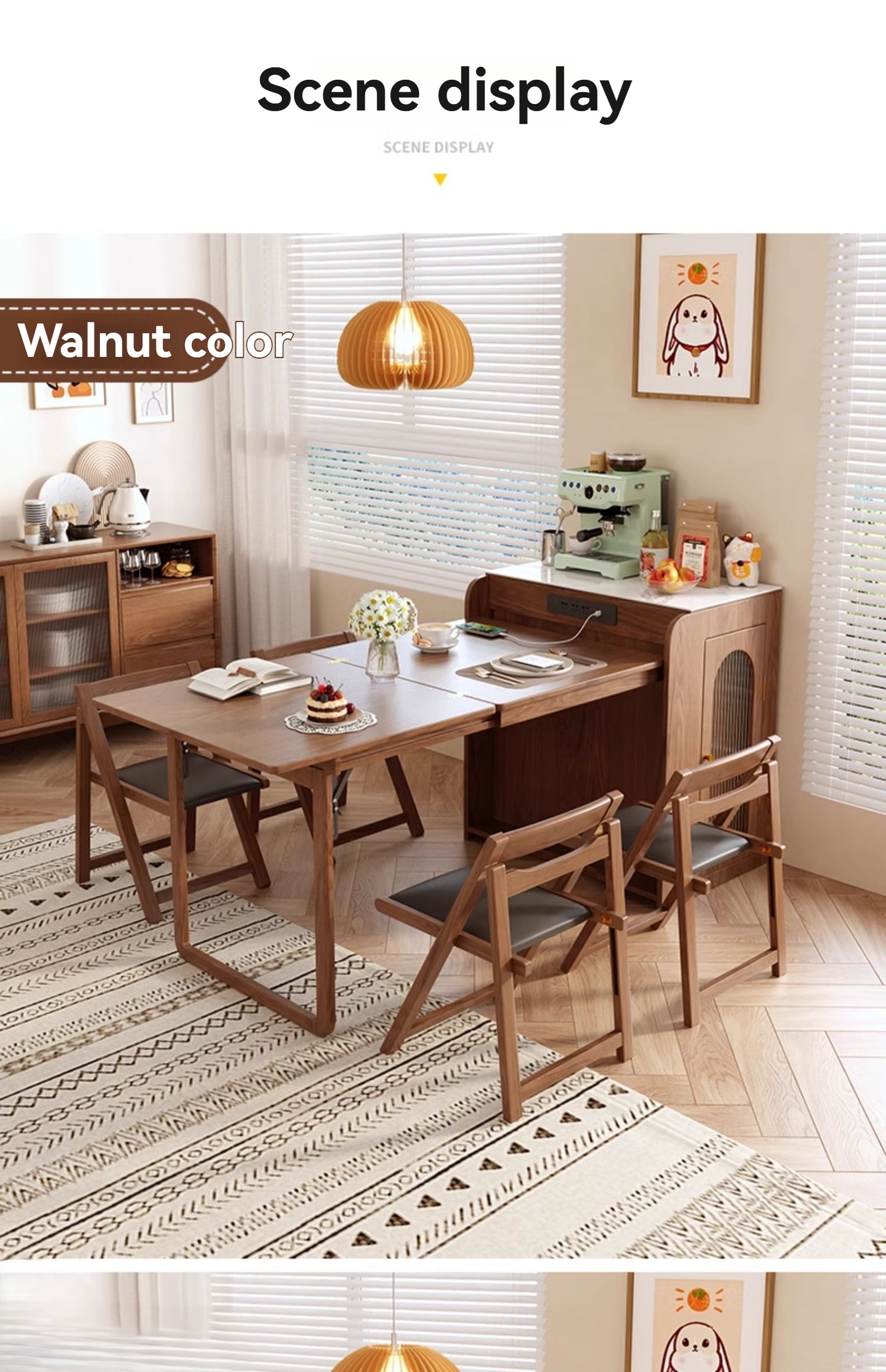 Integrated retractable home, small apartment, dining table, and chair combination with a Dining Side Cabinet