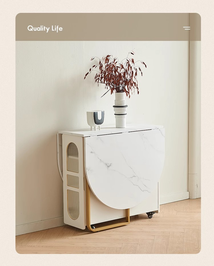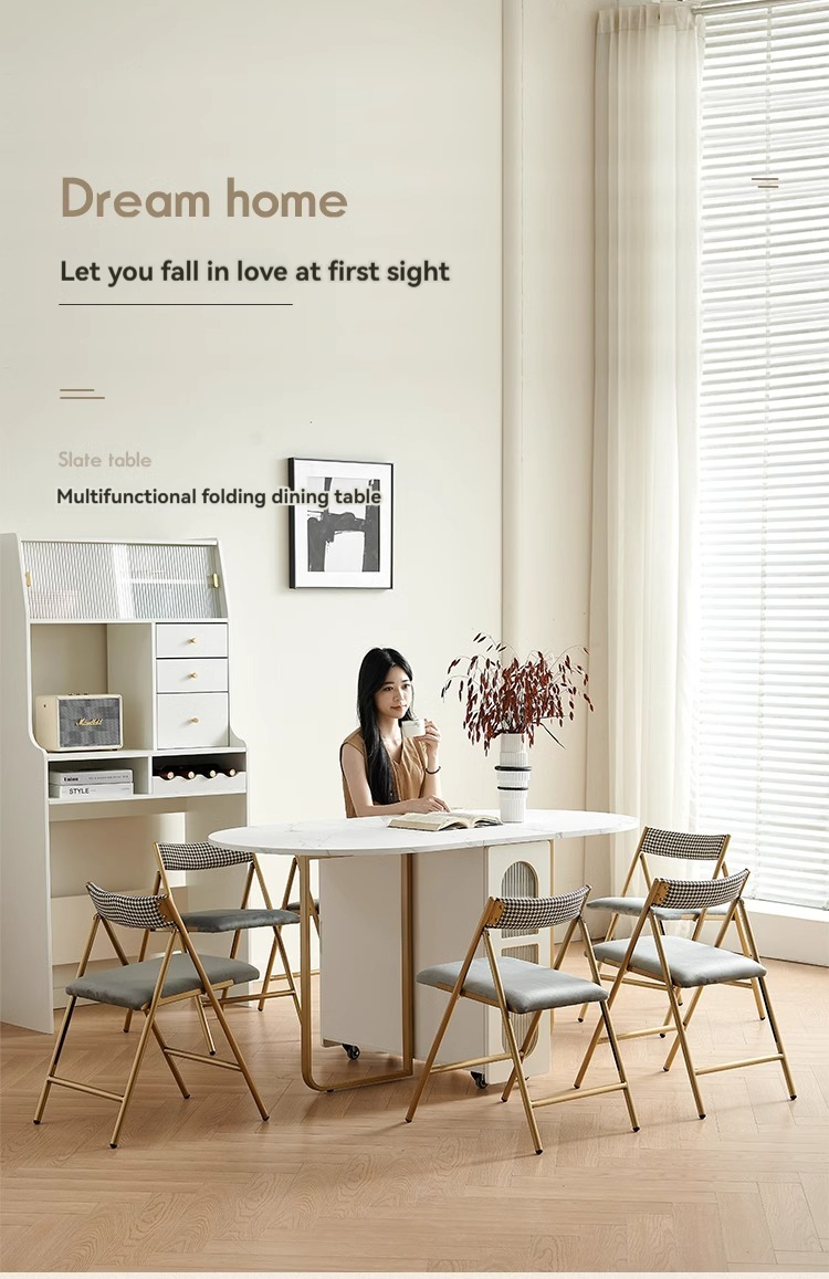Rock folding dining table, modern and minimalist small unit household rectangular table, multifunctional telescopic and foldable tabletop dining table-Smart-Living