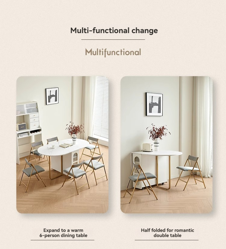 Rock folding dining table, modern and minimalist small unit household rectangular table, multifunctional telescopic and foldable tabletop dining table-Smart-Living Rock folding dining table, modern and minimalist small unit household rectangular table, multifunctional telescopic and foldable tabletop dining table-Smart-Living