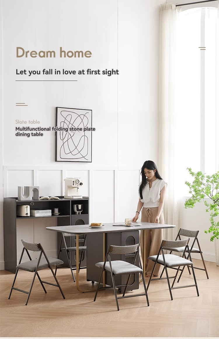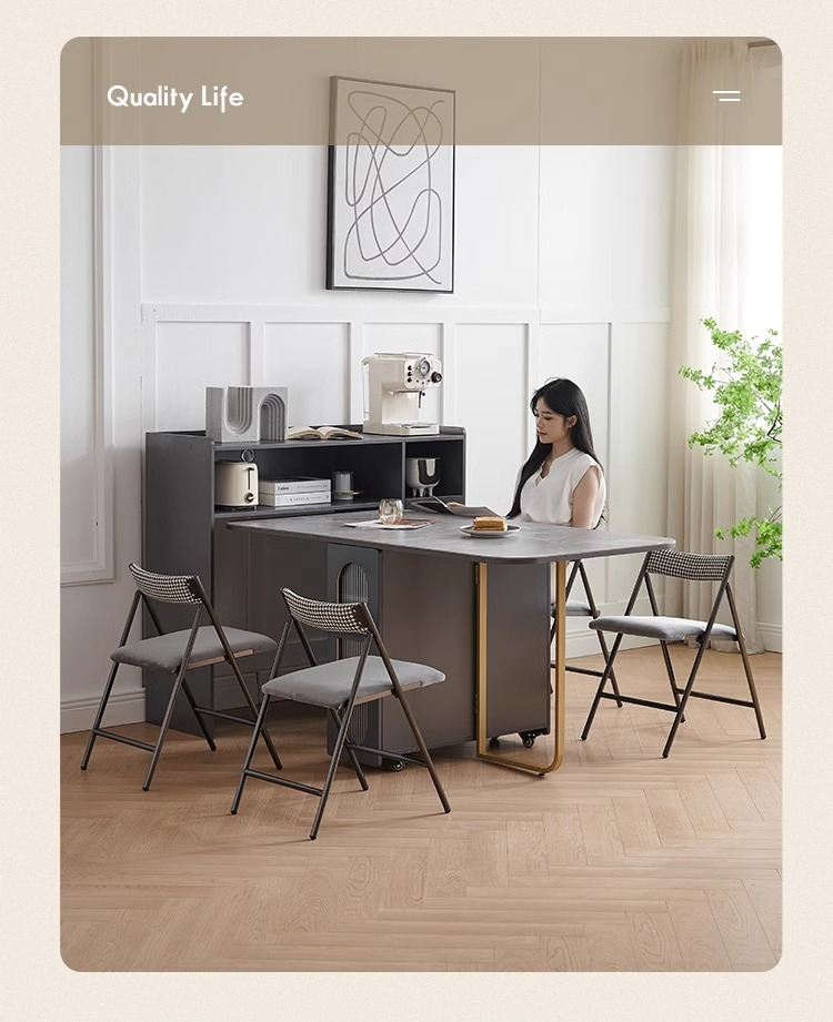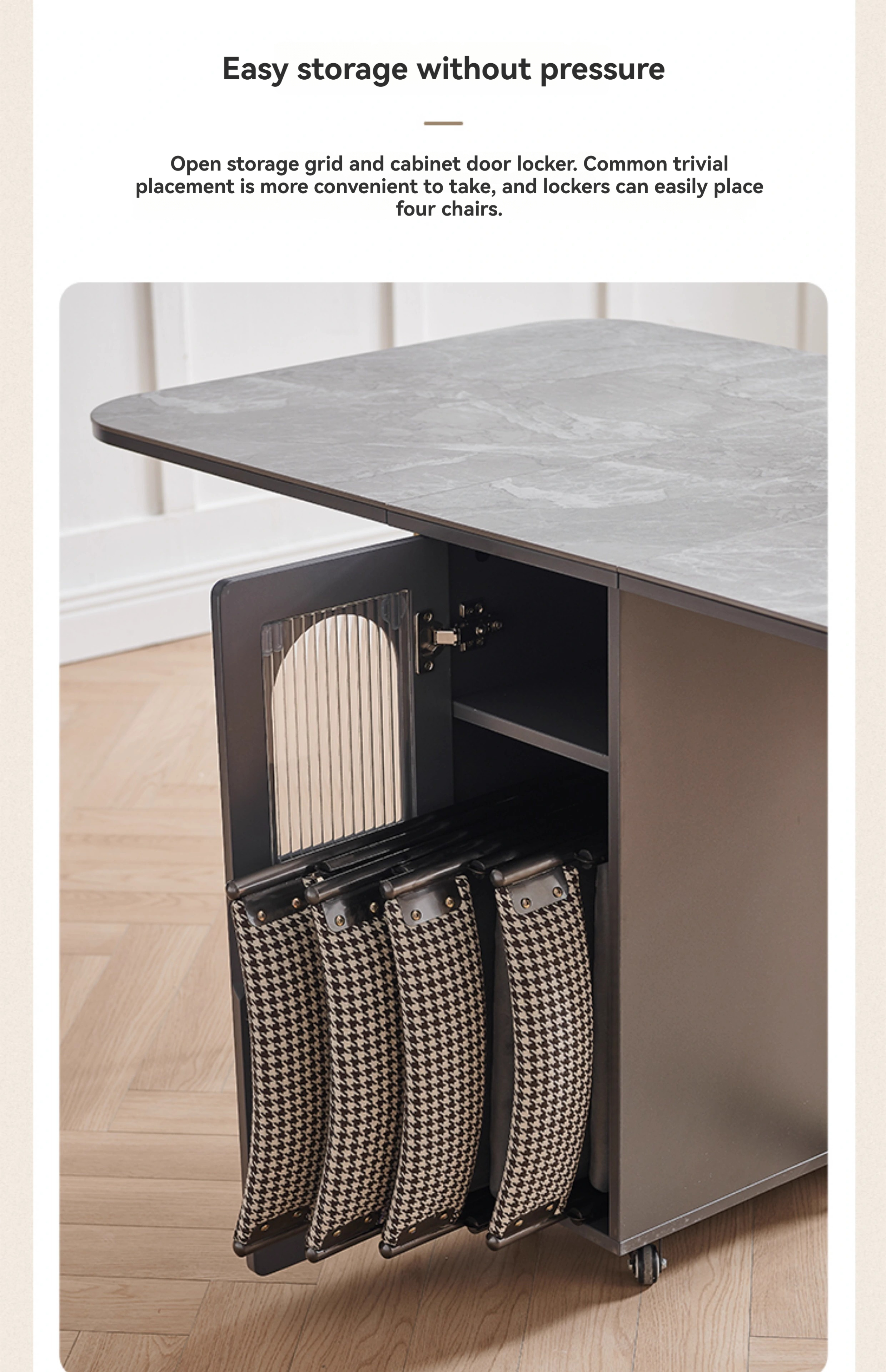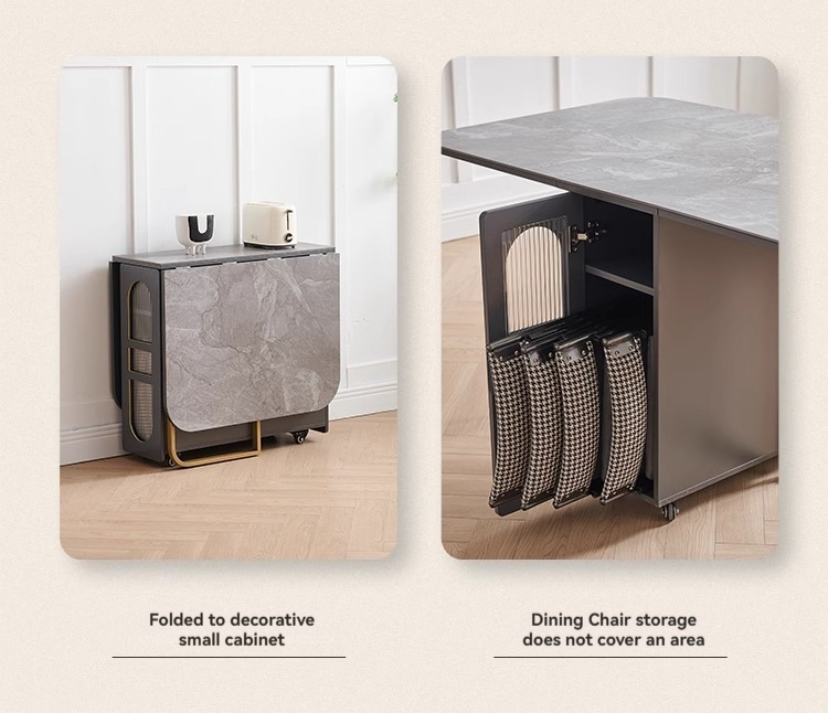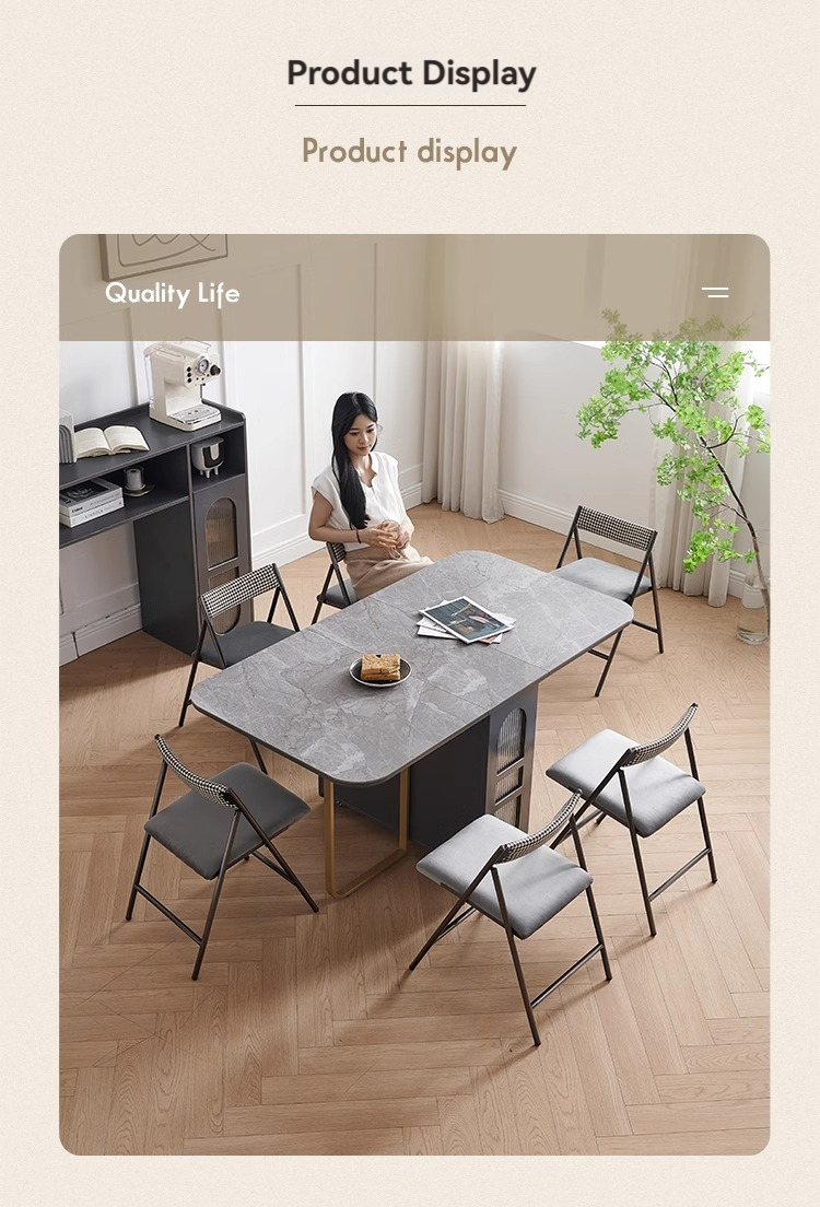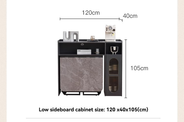 Grey slate dining table_ Stainless steel 6-chair_ Dinner side cabinet (low)