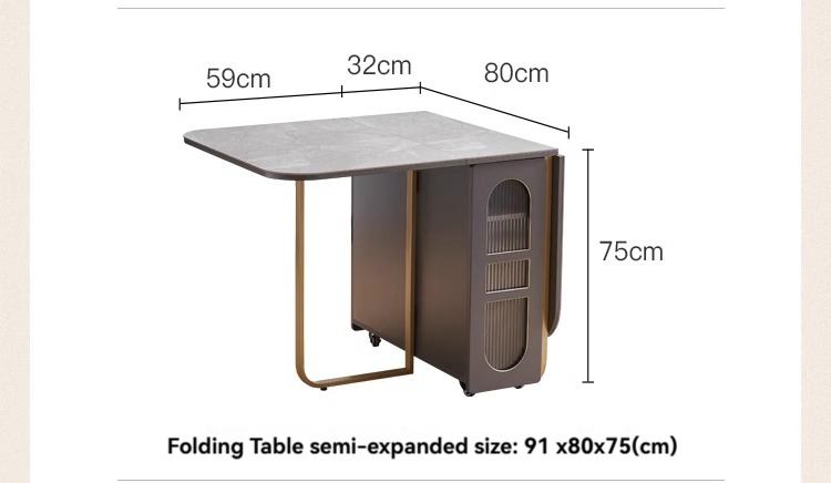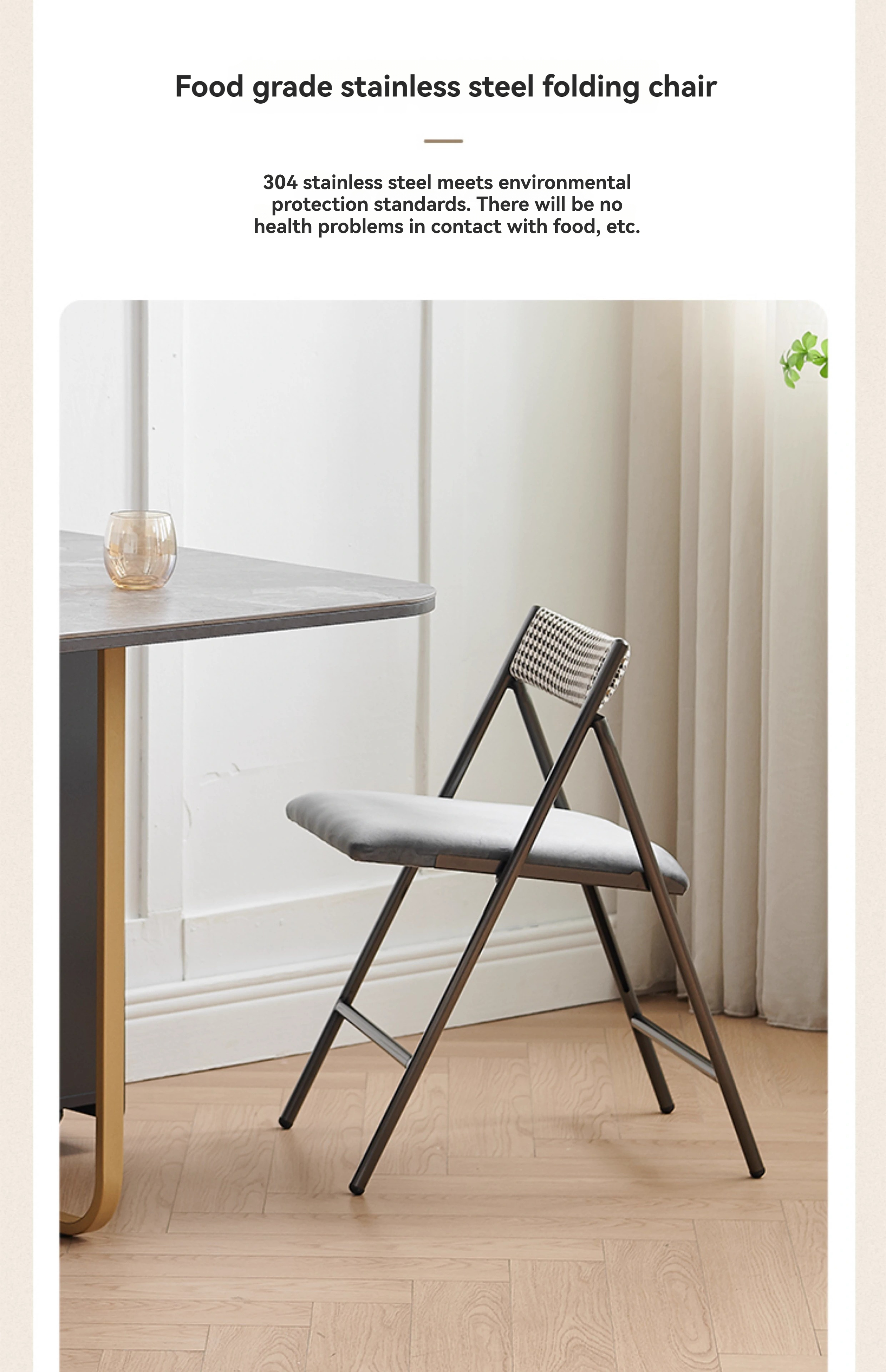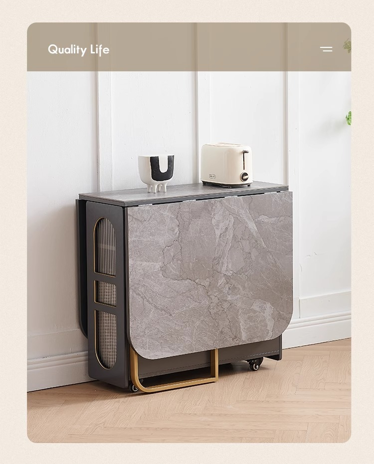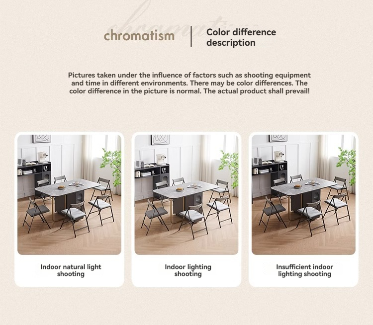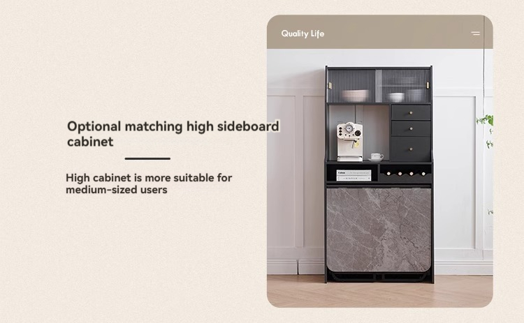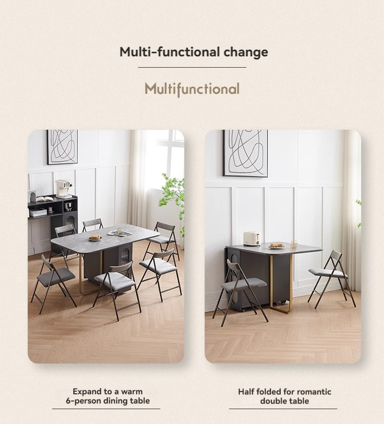 Grey slate dining table_ Stainless steel 6-chair_ Dinner side cabinet (low)
