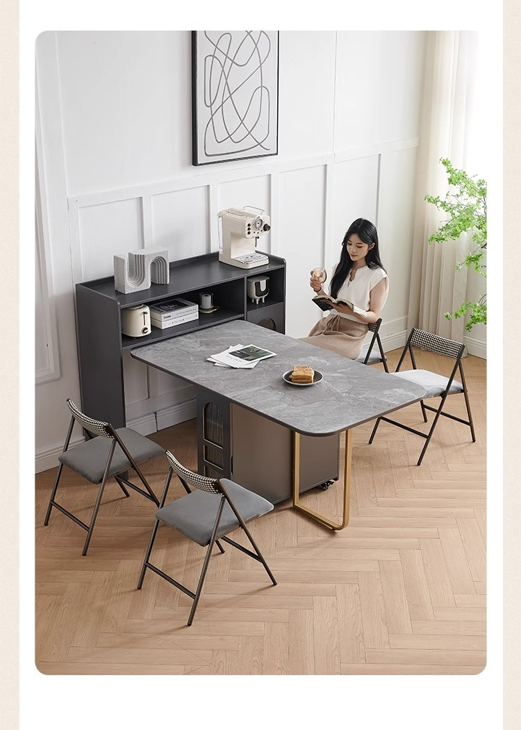 Grey slate dining table_ Meal side cabinet_ 6 chairs (carbon steel)