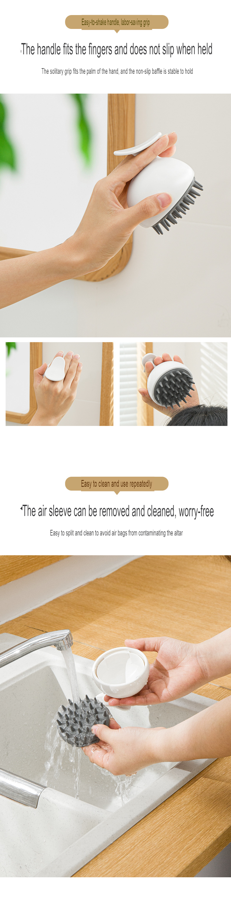 Smart-living Japanese Style Silicone Soft Head Scalp Massage Anti Dandruff Shampoo Washing Hair Comb and grip -NC -A0569