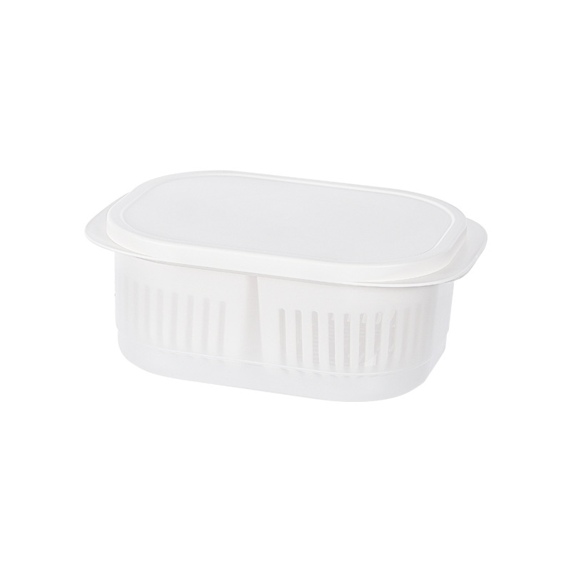 Smart-living kitchen drainable twin compartment fresh keeping food storage box organizer with lid strainer -A0480-L -NC-Smart-Living