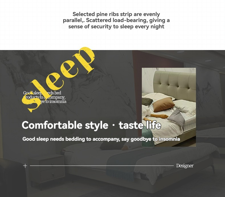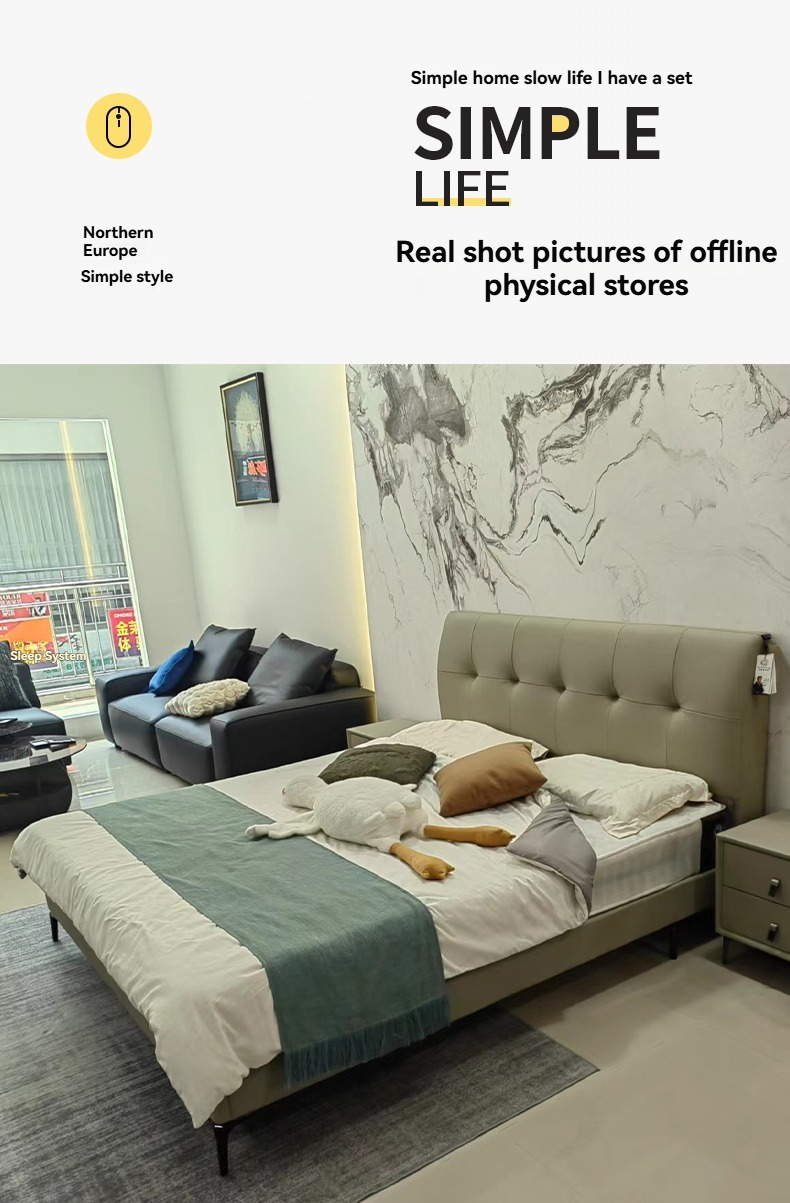 PRE ORDER / BTO PACKAGE - A - BED FRAME - Waffle top layer cowhide bed modern simple minimalist solid wood soft leather bed master bedroom