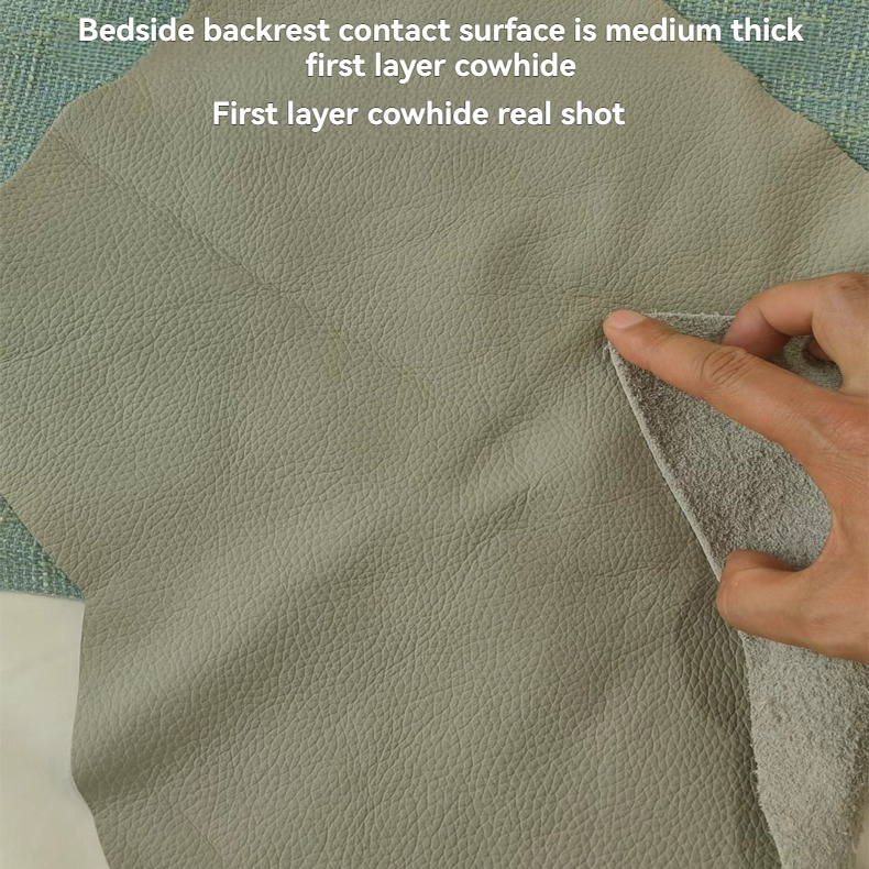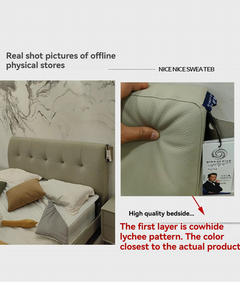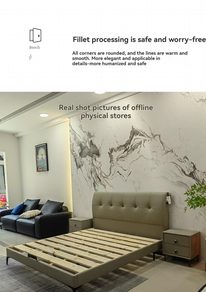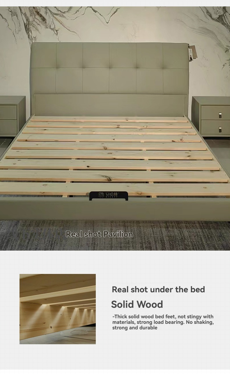 Waffle top layer cowhide bed modern simple minimalist solid wood soft leather bed master bedroom Waffle top layer cowhide bed modern simple minimalist solid wood soft leather bed master bedroom