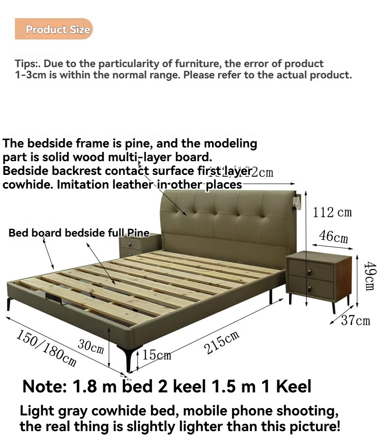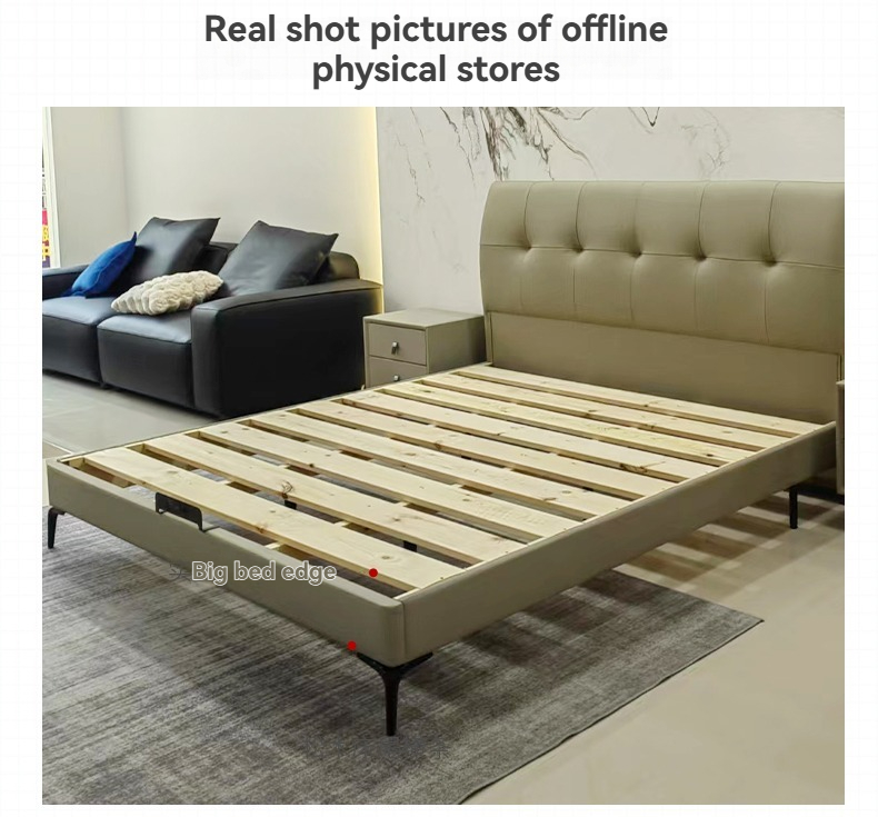 PRE ORDER / BTO PACKAGE - A - BED FRAME - Waffle top layer cowhide bed modern simple minimalist solid wood soft leather bed master bedroom PRE ORDER / BTO PACKAGE - A - BED FRAME - Waffle top layer cowhide bed modern simple minimalist solid wood soft leather bed master bedroom