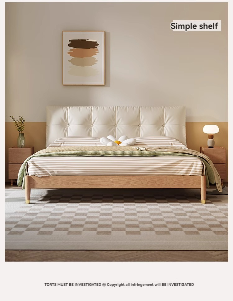 [Pre-order]  Modern simple log air small apartment high box storage bed Tatami double bed Master bedroom back soft blanket bed-Smart-Living