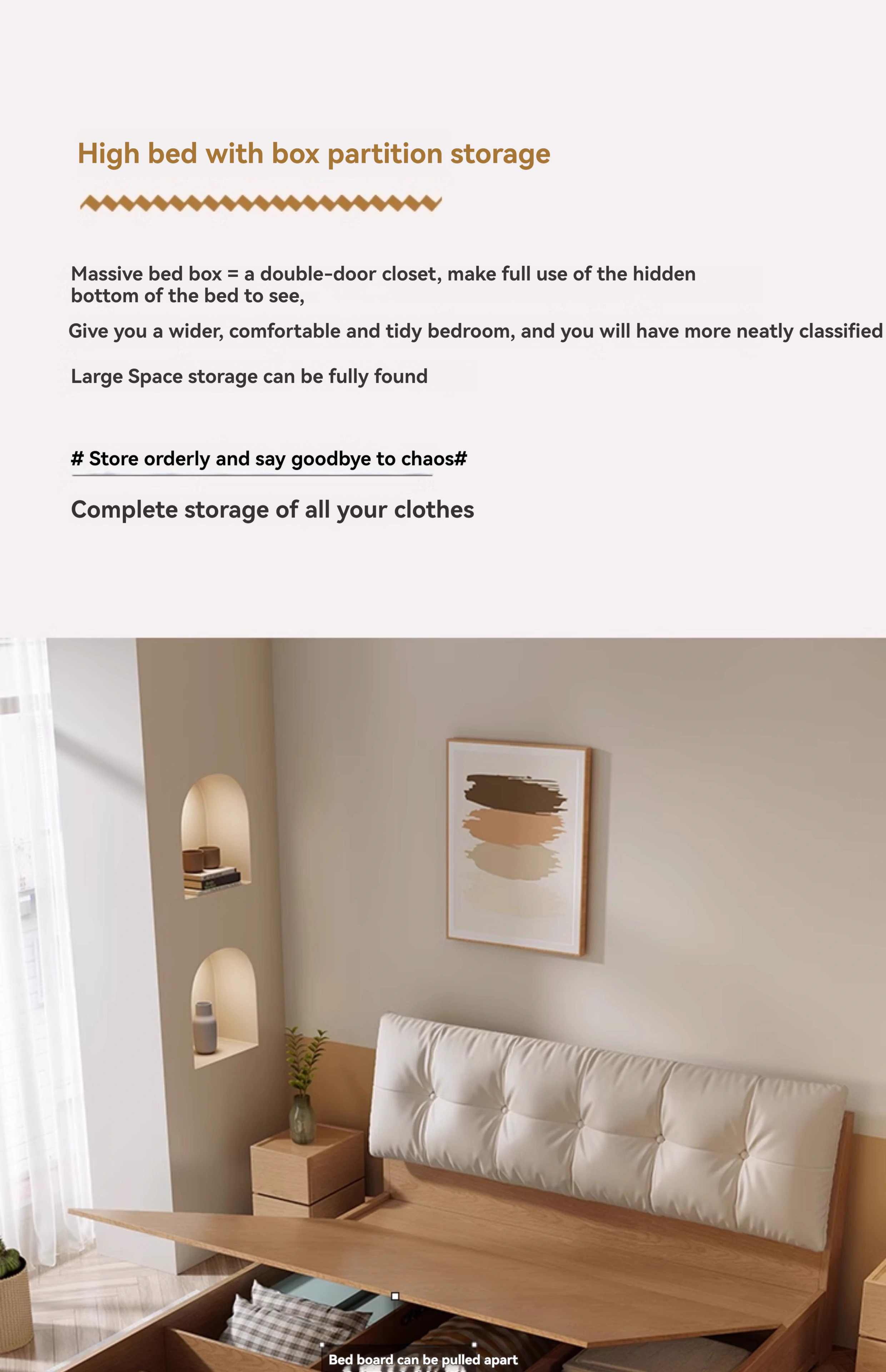 [Pre-order]  Modern simple log air small apartment high box storage bed Tatami double bed Master bedroom back soft blanket bed-Smart-Living [Pre-order]  Modern simple log air small apartment high box storage bed Tatami double bed Master bedroom back soft blanket bed-Smart-Living