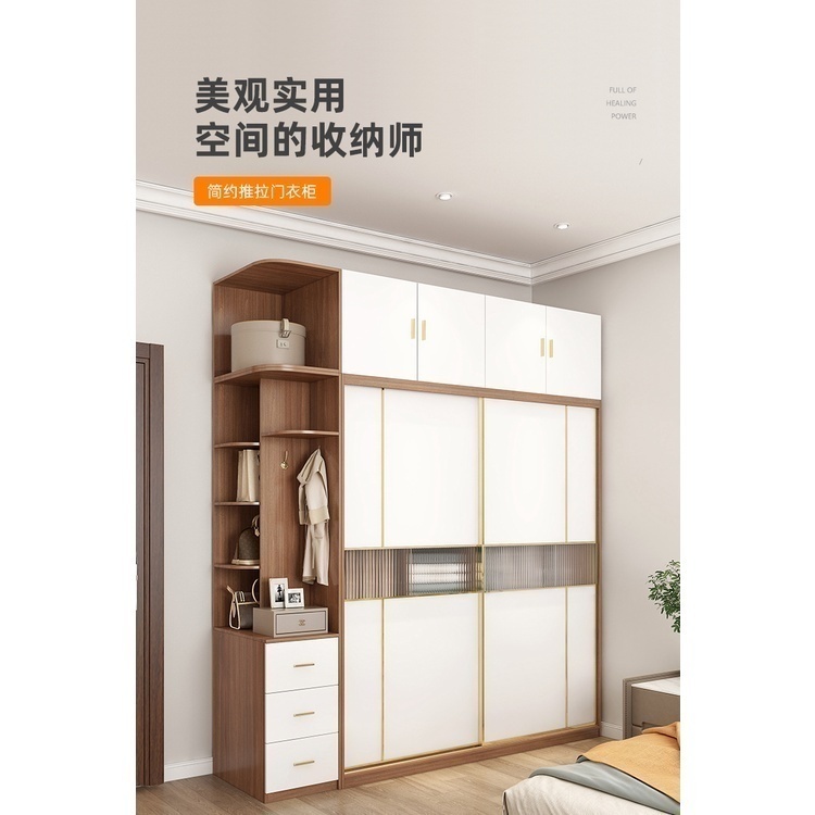 [Pre-order] Solid Wood Sturdy Storage Cabinet Combination for Household Bedroom - Modern and Minimalist Bedroom Sliding Door Wardrobe - Internet Popular Style