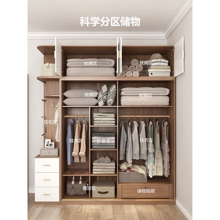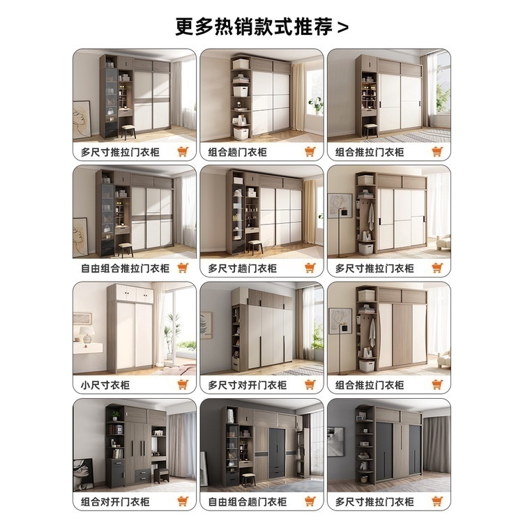 Solid wood wardrobe, sturdy storage cabinet combination for household bedroom, modern and minimalist bedroom sliding door, wardrobe, internet popular