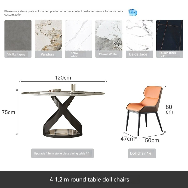 [Pre-order] Dining table light luxury modern simple small apartment dining table home with turntable dining table and chair combination bright slate round dining table-Smart-Living [Pre-order] Dining table light luxury modern simple small apartment dining table home with turntable dining table and chair combination bright slate round dining table-Smart-Living