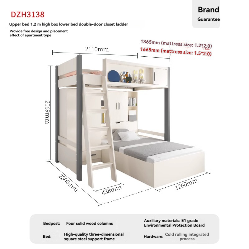 (B) Bed Frame+(C2) 1.2m High box lower bed+(E2) Double Door Wardrobe