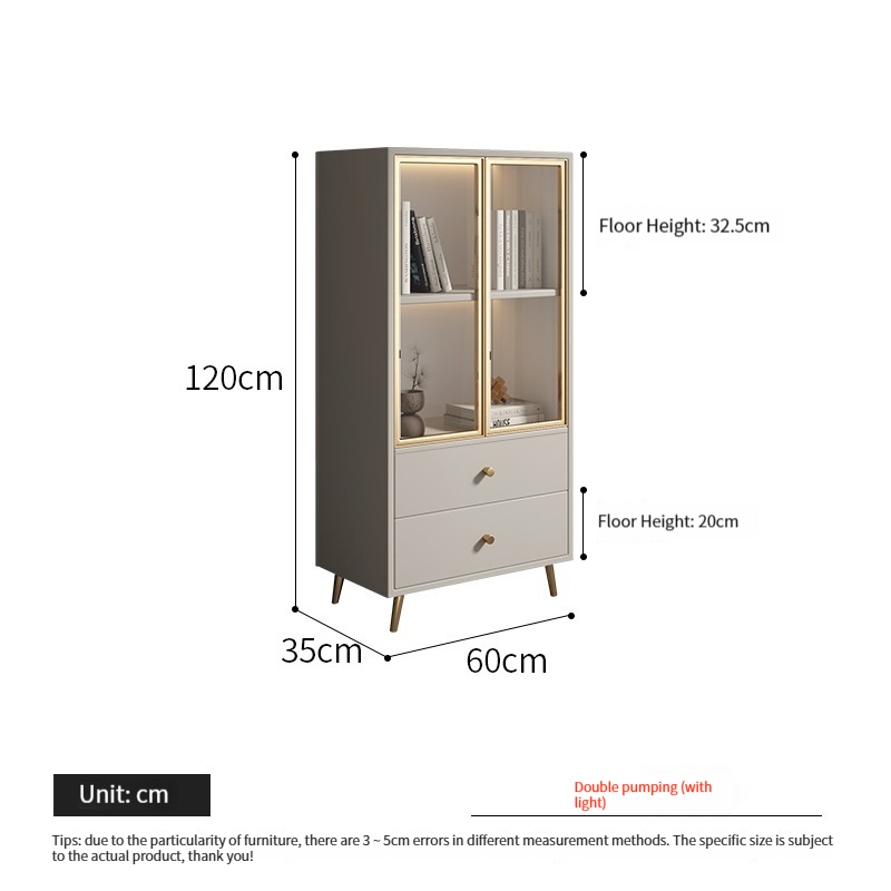 Double drawer cabinet and triple drawer cabinet, pure white color, with light;