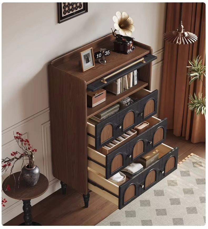 [PRE-ORDER] French Retro Solid Wood Bucket Cabinet Modern Small Side Cabinet