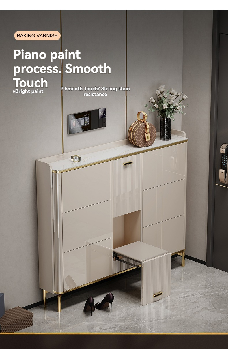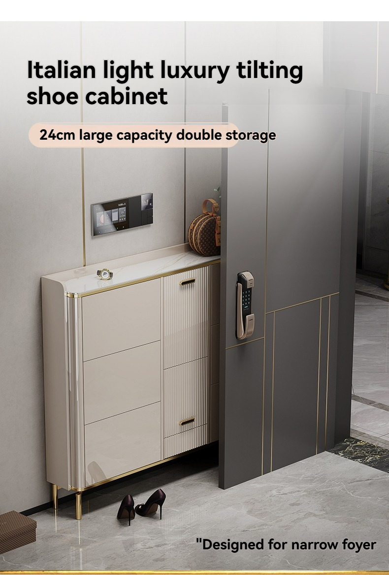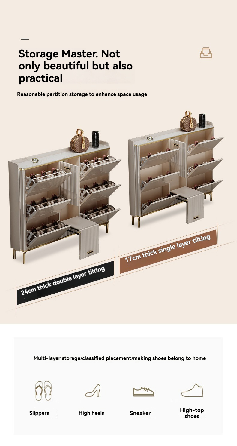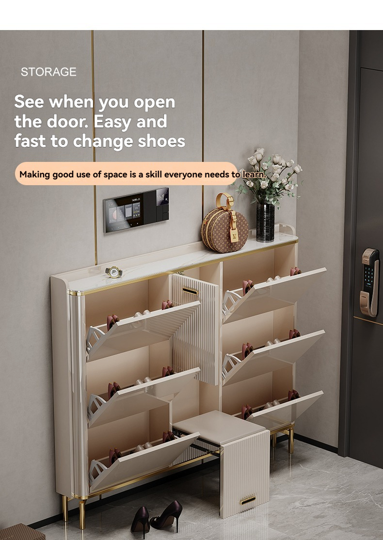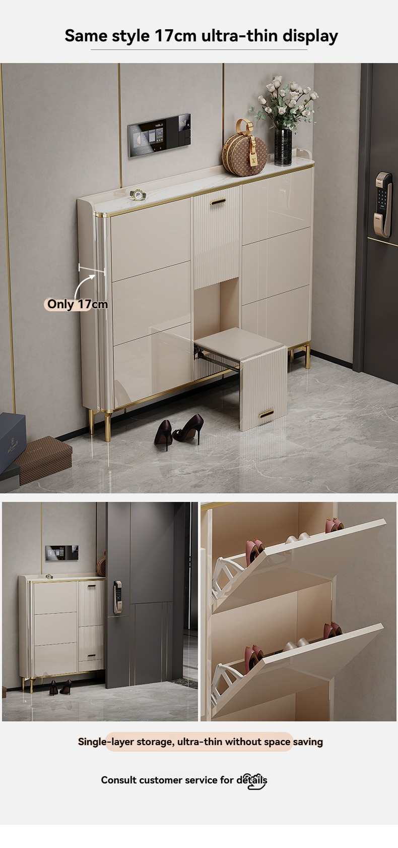 [Pre-order]Light luxury ultra-thin tipping bucket shoe cabinet, home door locker, outdoor aisle entrance, home stool integrated shoe rack