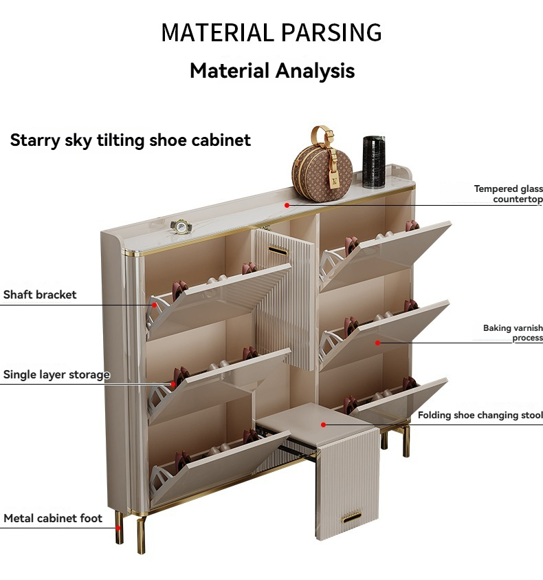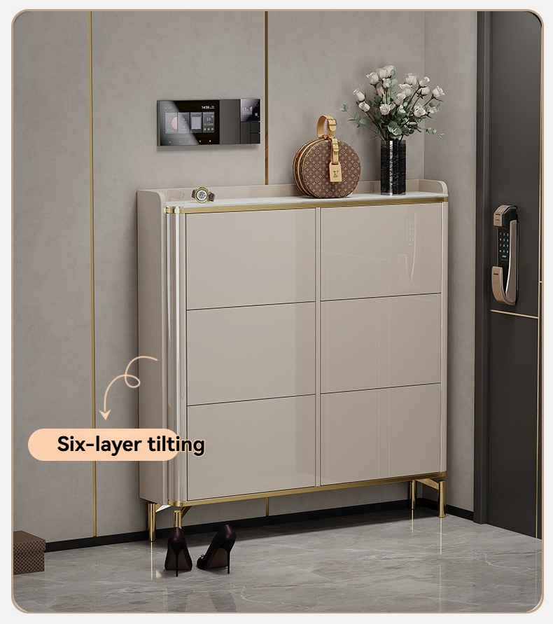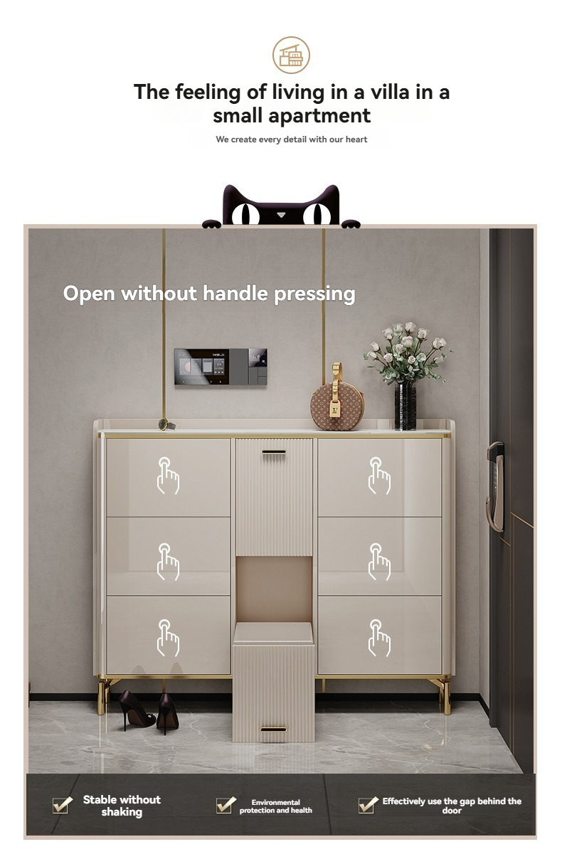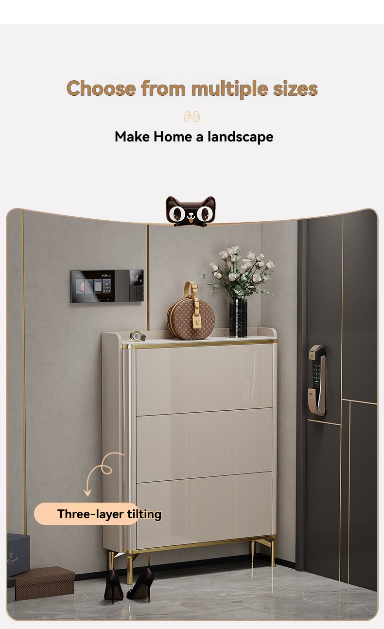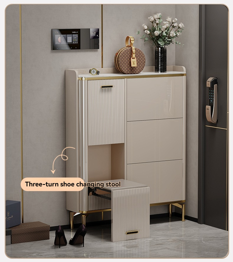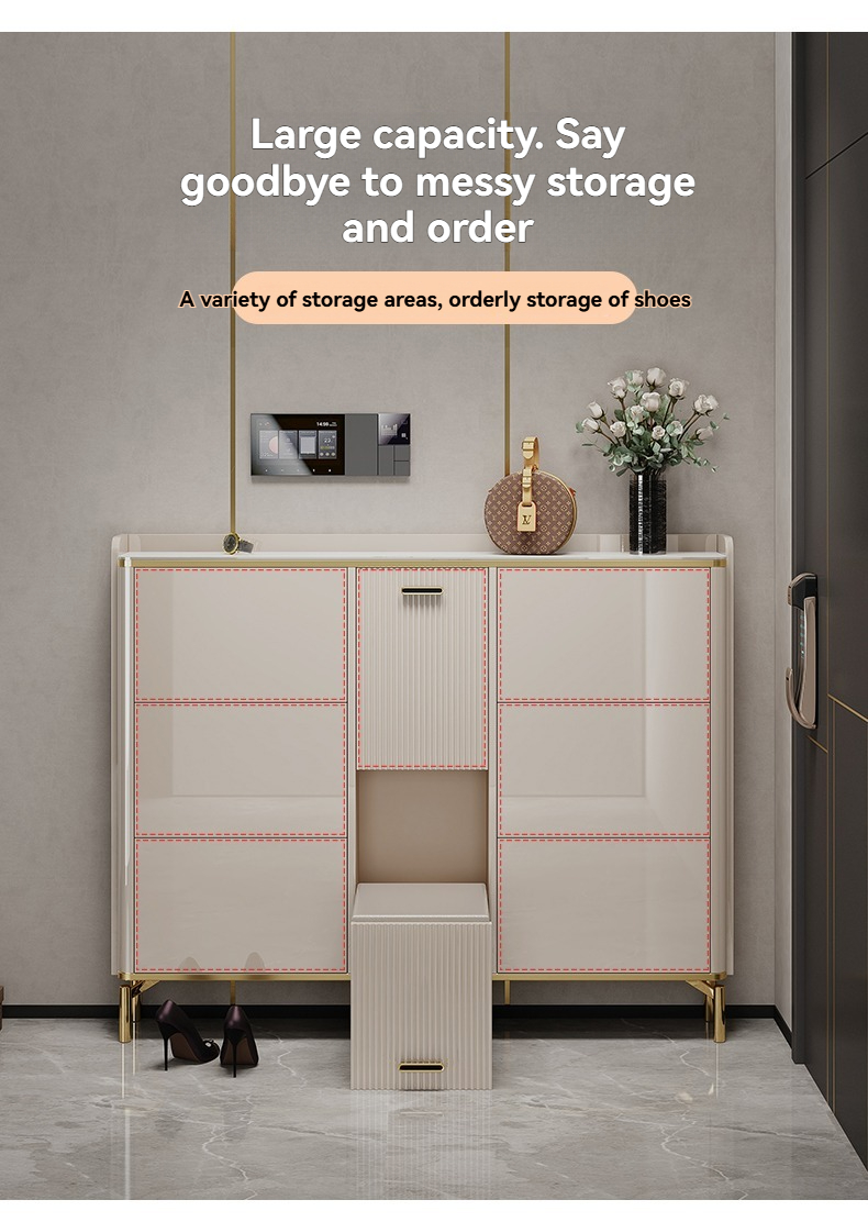 [Pre-order]Light luxury ultra-thin tipping bucket shoe cabinet, home door locker, outdoor aisle entrance, home stool integrated shoe rack