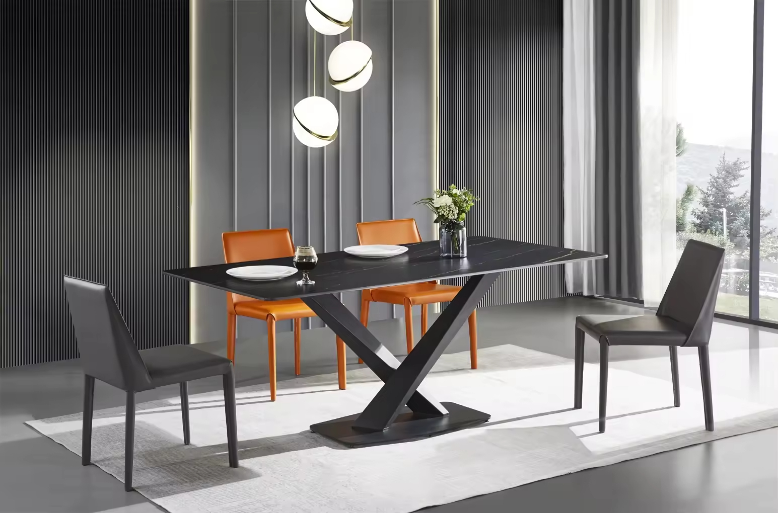 [PRE-ORDER] New Italian Style Dining Table and Chair Set Rectangular Sintered Stone Top Customizable for Small Apartments