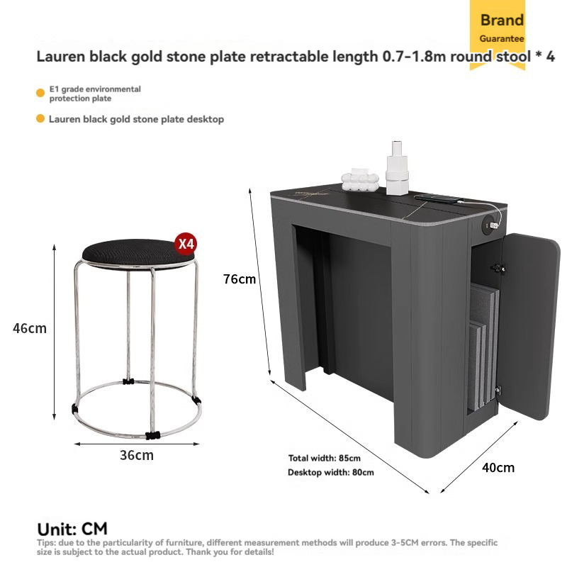 Color classification: [Cloth Gray Tabletop] Telescopic dining table 0.4-1.8 meters, [Cloth Gray Tabletop] Telescopic dining table+chairs * 2, [Cloth Gray Tabletop] Telescopic dining table+chairs * 4, [Cloth Gray Tabletop] Telescopic dining table+chairs * 6, [Pure White Rock Surface] Telescopic dining table 0.4-1.8 meters, [Pure White Rock Surface] Telescopic dining table+chairs * 2, [Pure White Rock Surface] Telescopic dining table+chairs * 4, [Pure White Rock Surface] Telescopic dining table+chairs * 6, [Snow Mountain White Rock Surface] Telescopic dining table 0.4-1.8 meters, [Snow Mountain White Rock Surface] Telescopic dining table+chairs * 2, [Snow Mountain White Rock Surface] 4 retractable dining tables and chairs, 6 retractable dining tables and chairs on the snow capped white rock surface, 0.4-1.8 meters retractable dining tables and chairs on the burnt stone glass surface, 2 retractable dining tables and chairs on the burnt stone glass surface, 4 retractable dining tables and chairs on the burnt stone glass surface, and 6 retractable dining tables and chairs on the burnt stone glass surface, 【 Lauren Black Gold Rock Surface 】 Telescopic dining table 0.4-1.8 meters, 【 Lauren Black Gold Rock Surface 】 Telescopic dining table+dining chair * 2, 【 Lauren Black Gold Rock Surface 】 Telescopic dining table+dining chair * 4, 【 Lauren Black Gold Rock Surface 】 Telescopic dining table+dining chair * 6, 【 Cloth Gray Table Surface 】 Telescopic dining table+round stool * 4, 【 Cloth Gray Table Surface 】 Telescopic dining table+round stool * 8, 【 Pure White Rock Surface 】 Telescopic dining table+round stool * 4, 【 Pure White Rock Surface 】 Telescopic dining table+round stool * 8, 【 Snow Mountain White Rock Surface 】 Telescopic dining table+round stool * 4, 【 Snow Mountain White Rock Surface 】 Telescopic dining table+round stool * 8, 【 Fire Stone Glass Surface 】 4 retractable dining tables and round stools, 8 retractable dining tables and round stools with burnt stone glass surface, 4 retractable dining tables and round stools with Lauren black gold rock surface, 8 retractable dining tables and round stools with Lauren black gold rock surface