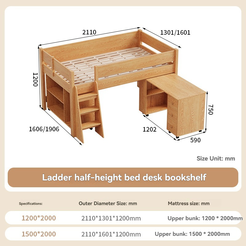[Pre-order]Solid wood half height bed, children's bed, bunk bed with pull-out invisible desk integrated multifunctional bunk bed and bunk table combination bed