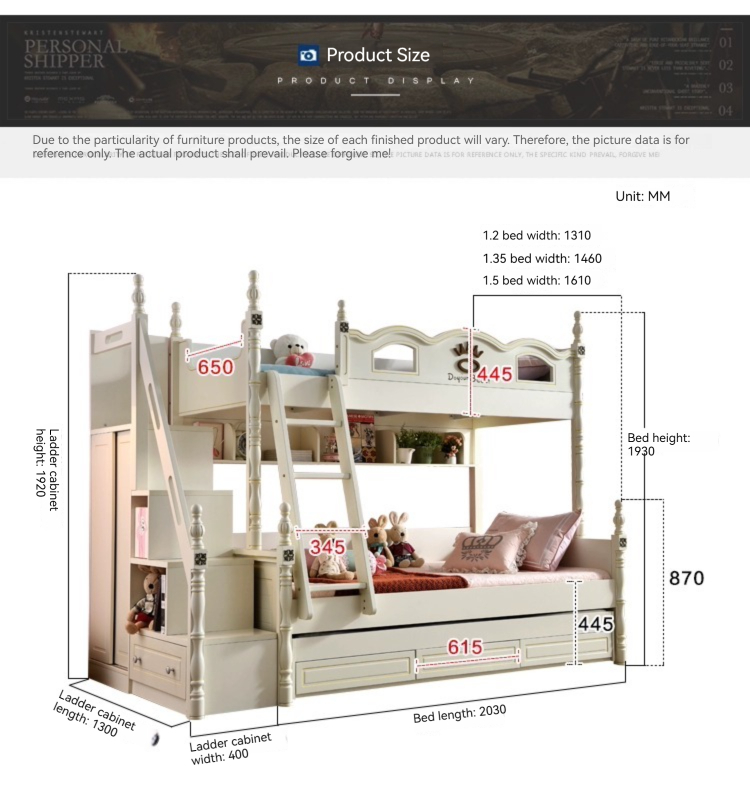 [Pre-order] White Children Bunk Bed with Storage
