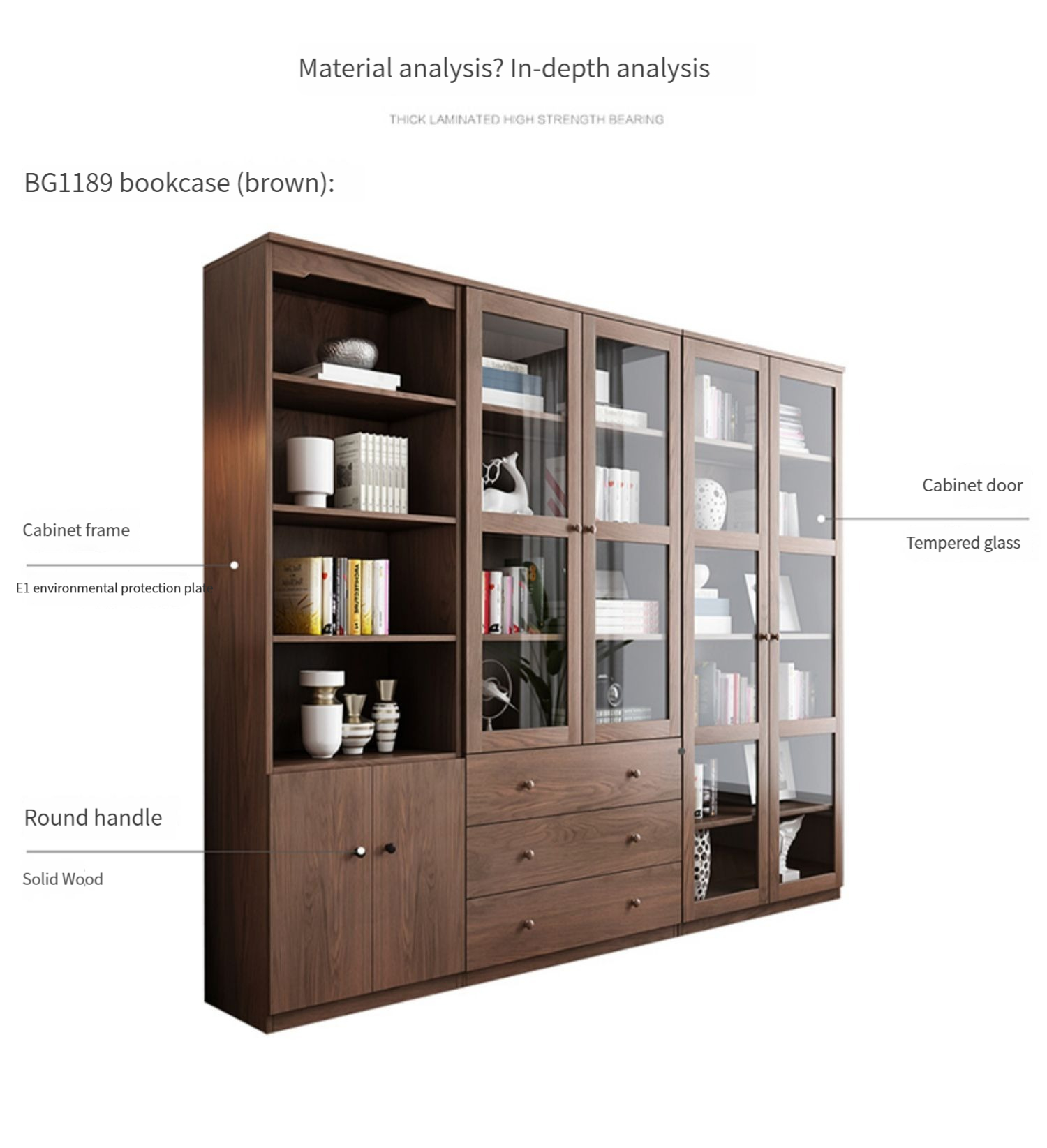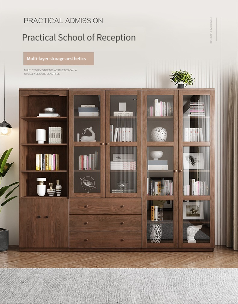 Color options: Open cabinet + two-door three-drawer glass cabinet + two-door freestanding glass cabinet, Two-door three-drawer glass bookcase, B1309G open bookcase + freestanding glass bookcase BG1189, BG1189 two-door freestanding glass bookcase, Hinged open bookcase + two-door three-drawer glass bookcase, B1309G hinged open bookcase, Two-door three-drawer glass bookcase + two-door freestanding glass bookcase