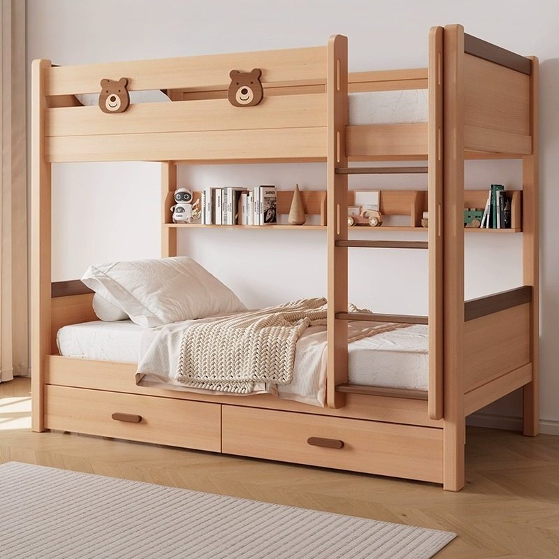 All solid wood bunk bed with high and low double layered mother and child beds, 1.5 meters in size, modern and simple parallel children's storage bed-Smart-Living