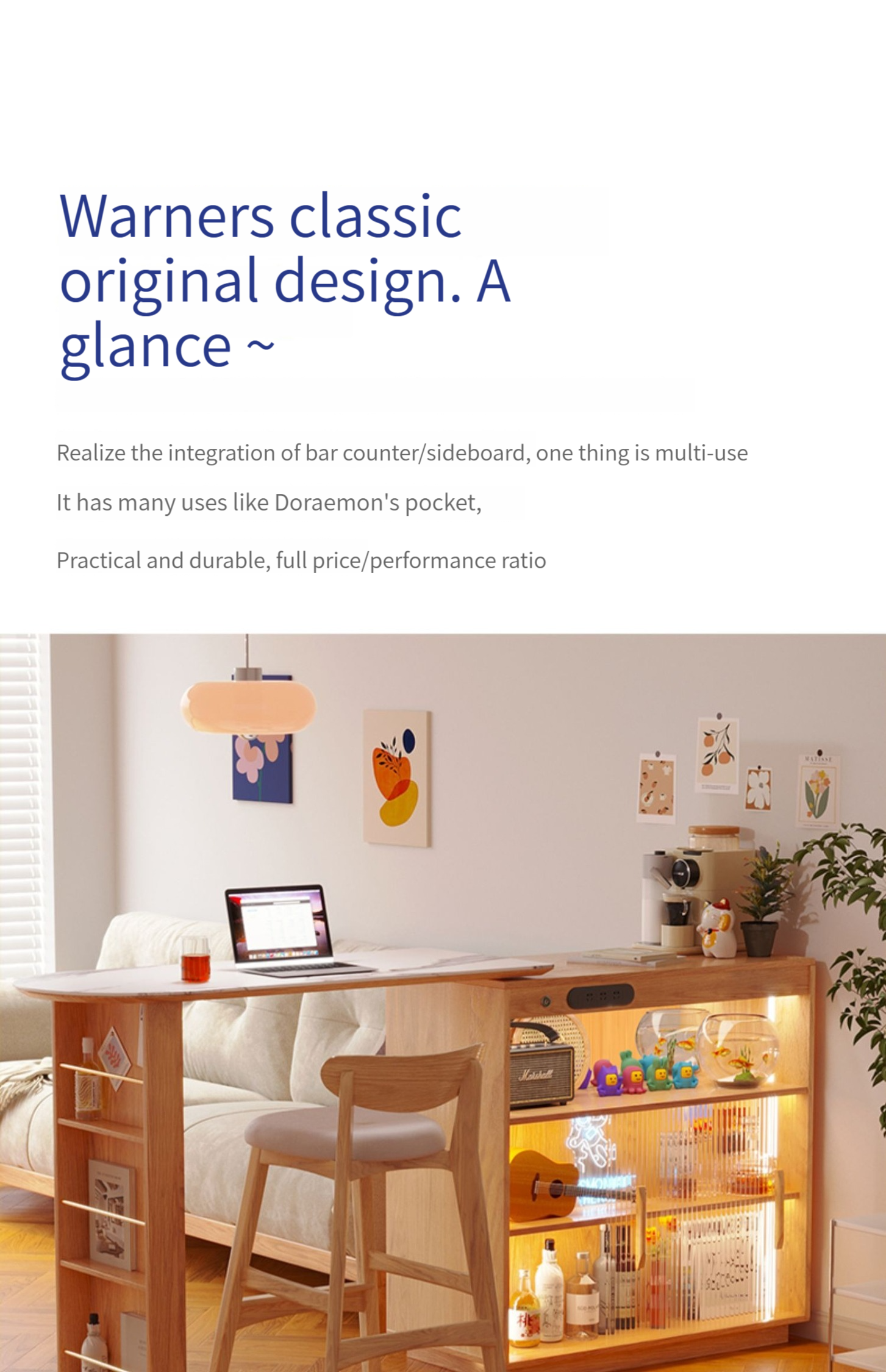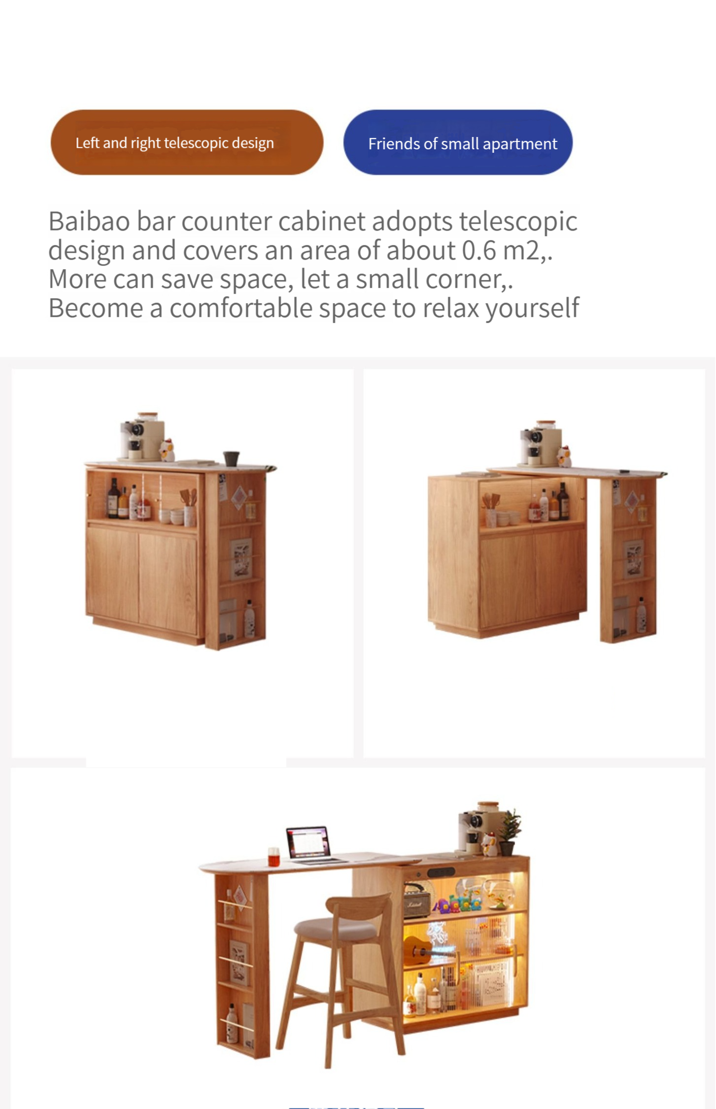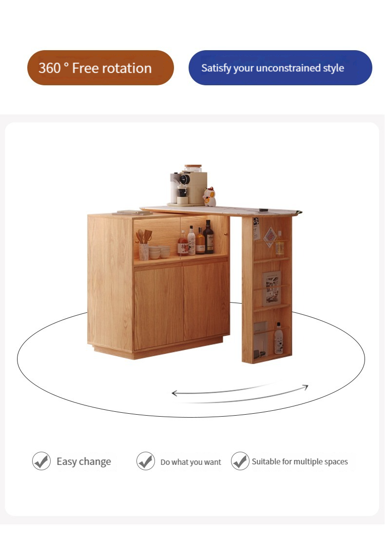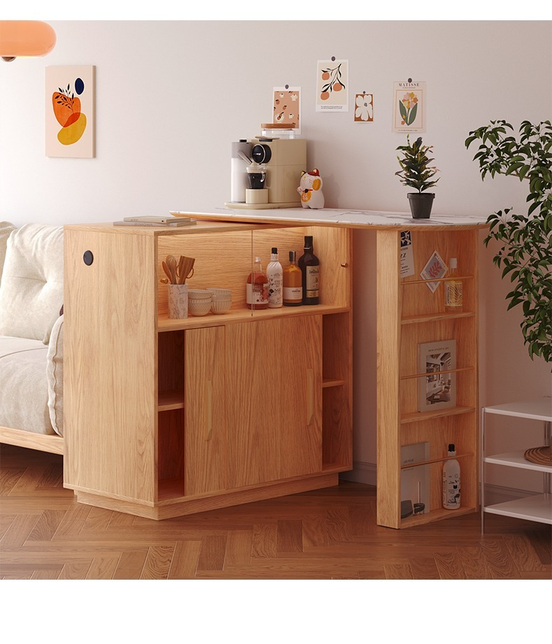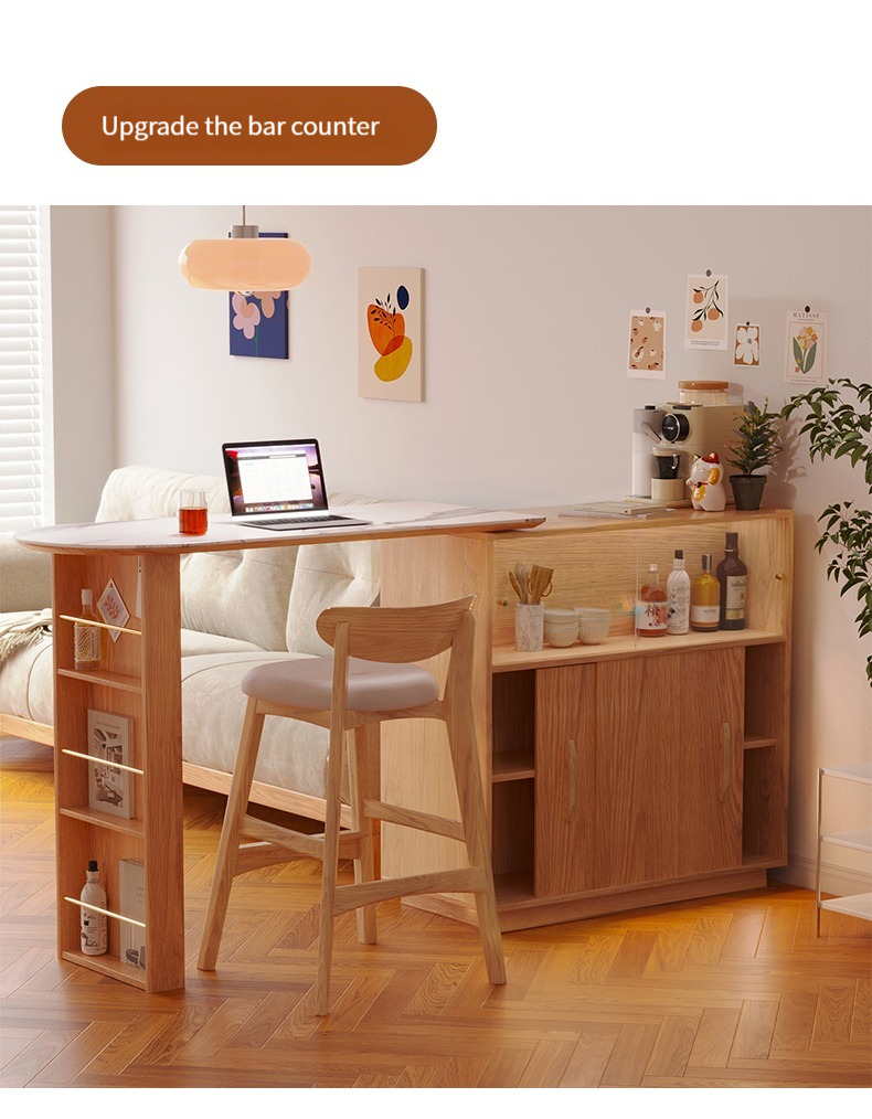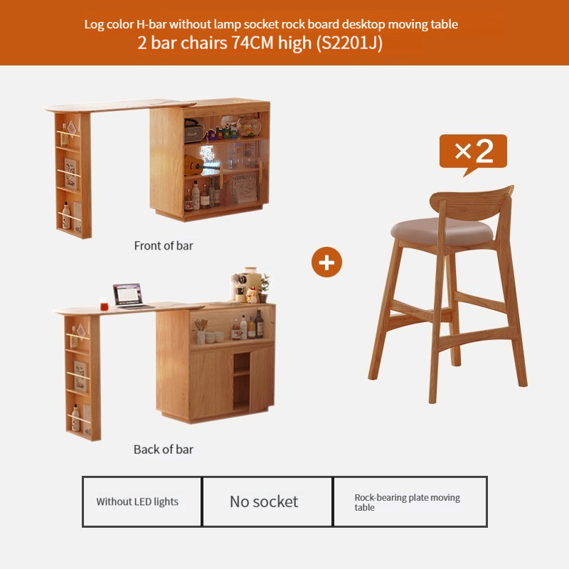 【Upgraded version - with LED light socket】Bar table + slate mobile table + 2 ash wood bar stools (S2201J) --- ↓Upgraded double-sided trip door: can be attached to the sofa to save space, can be installed left and right ↓-- ---
