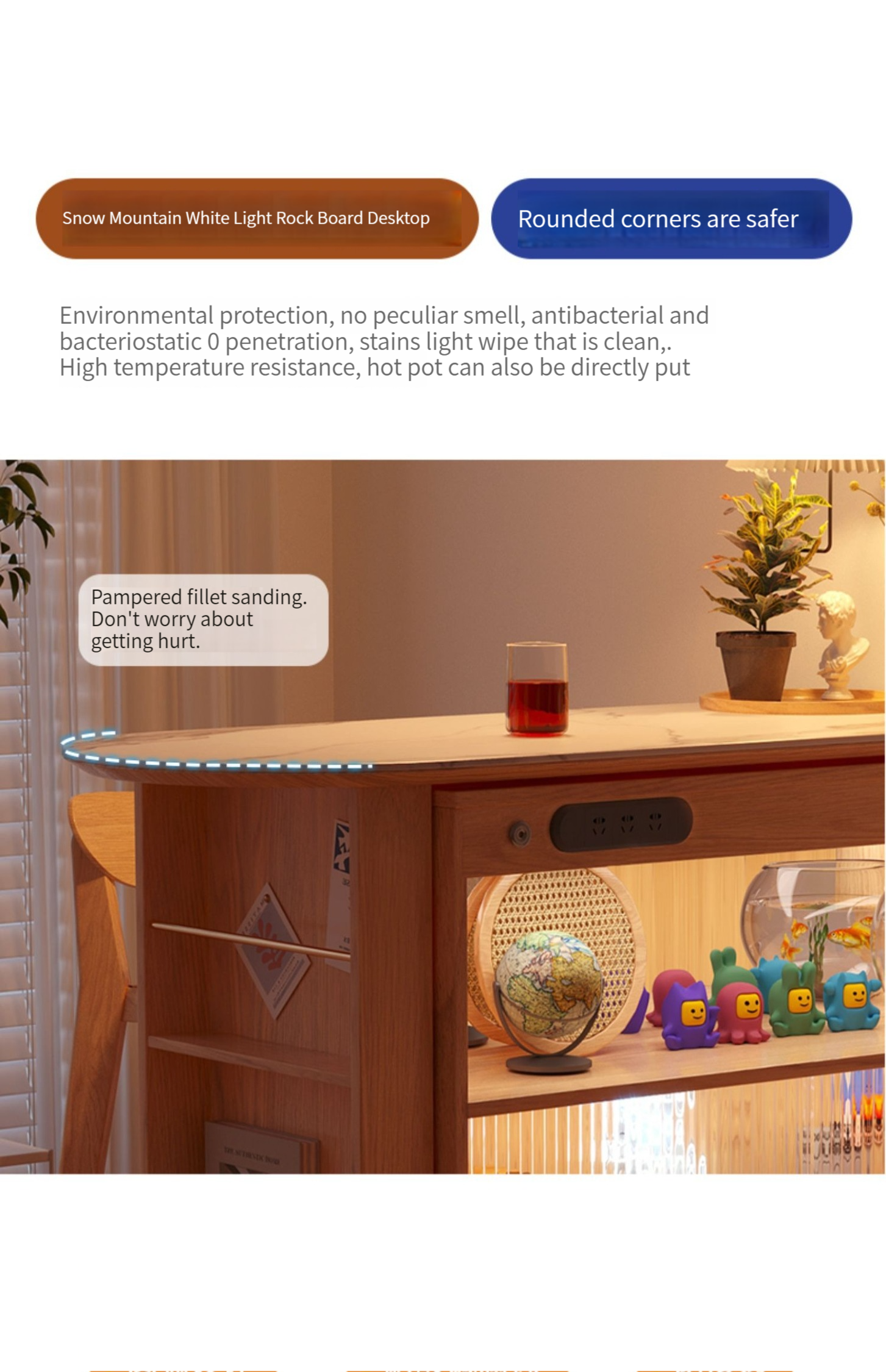 Signature version - with LED light socket】bar + rock slab mobile table