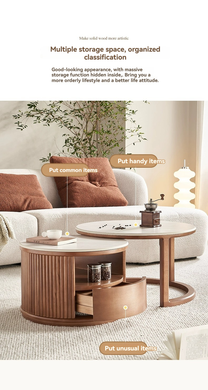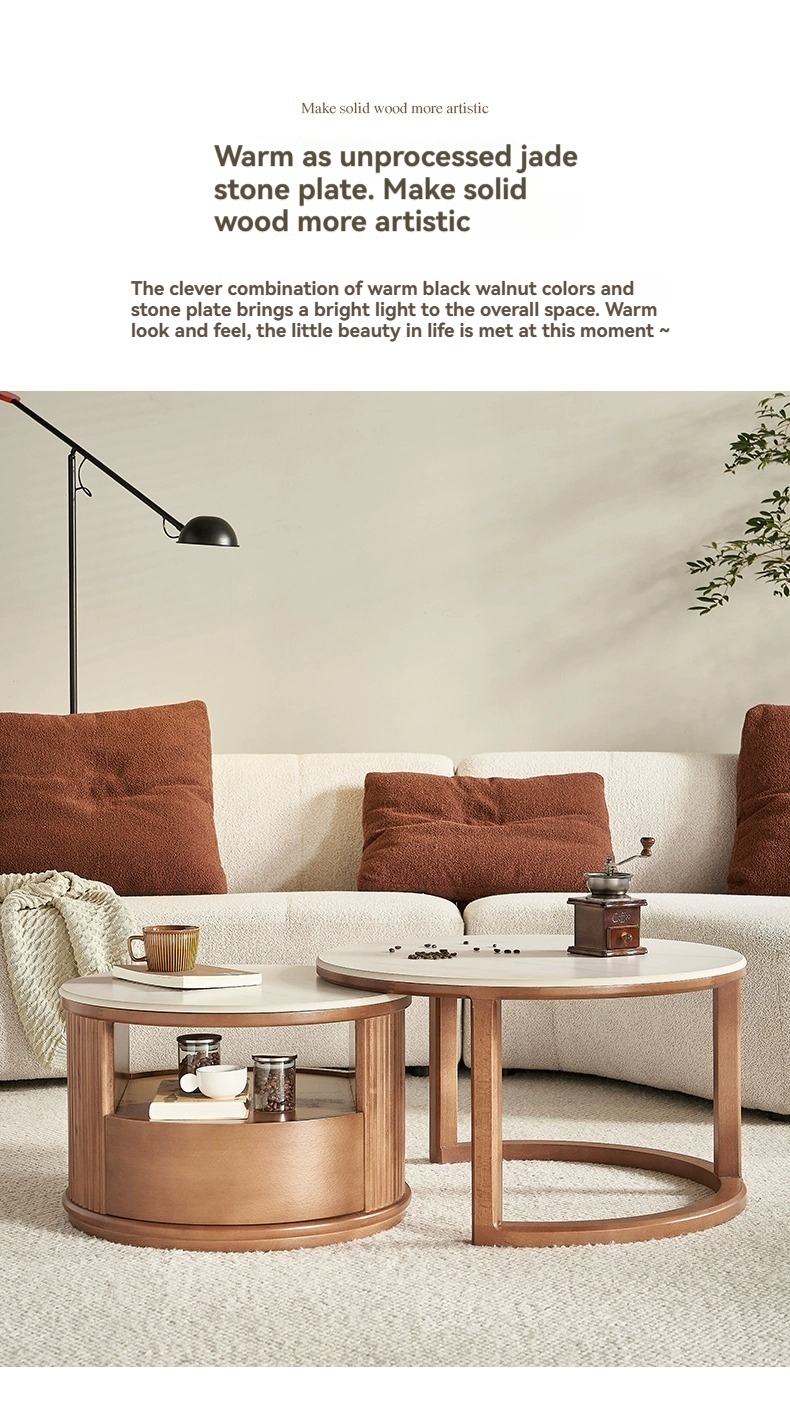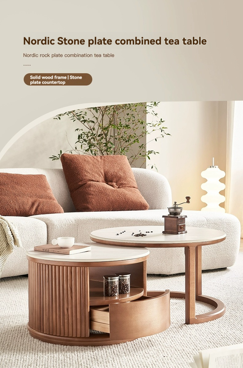 Walnut colored combination of large and small coffee tables