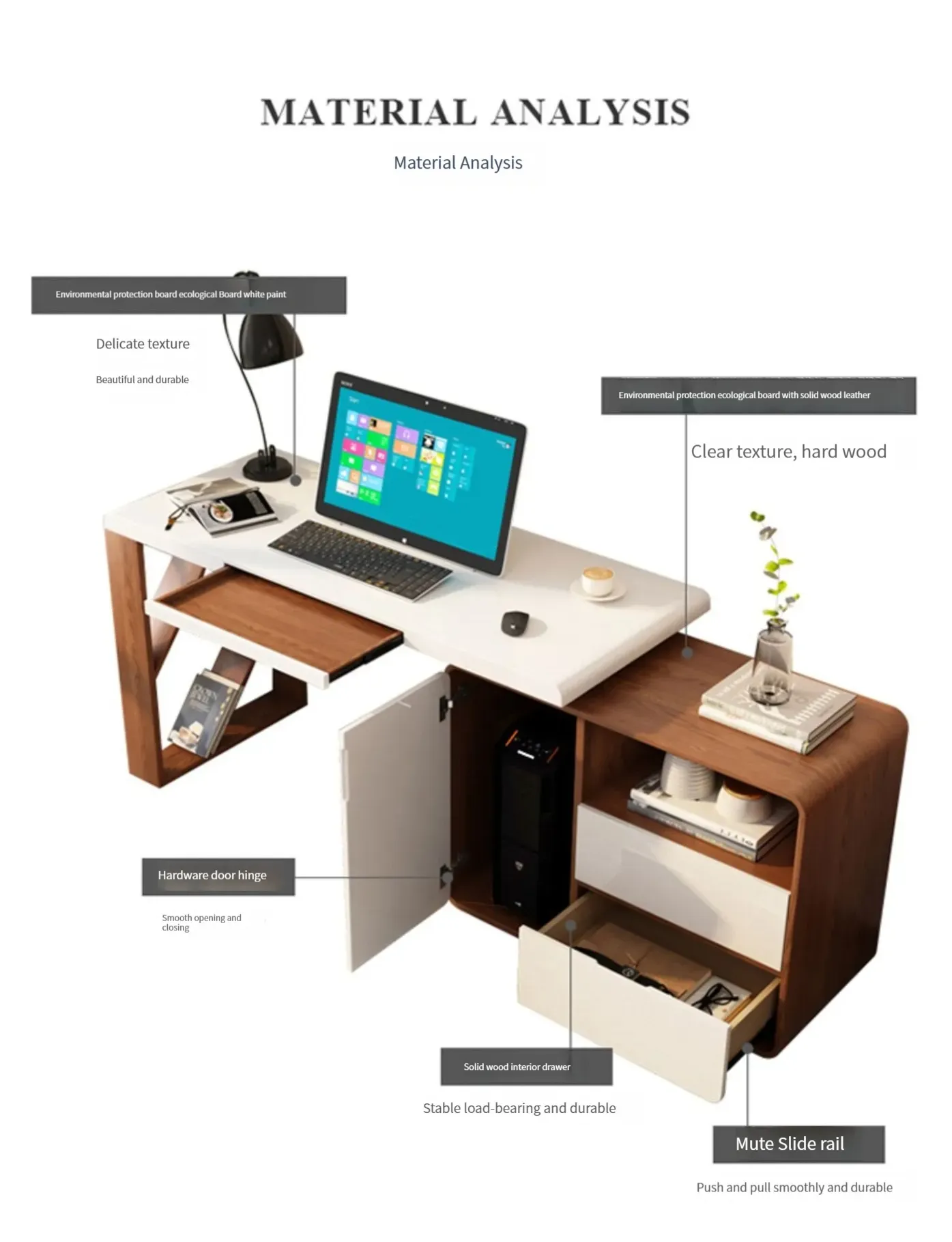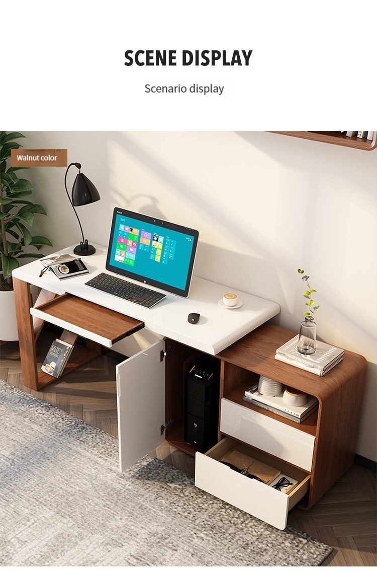 - Walnut + White: 1.6m desk - Natural Wood + White: 1.2m desk - Natural Wood + White: 1.4m desk - Natural Wood + White: 1.6m desk - Walnut + White: 1.2m desk + Horn chair - Walnut + White: 1.4m desk + Horn chair - Walnut + White: 1.6m desk + Horn chair - Horn chair available (optional white leather upholstery, sold only with desk) - Walnut: 1.4m computer desk with chassis slot (#2033) - Walnut: 1.6m computer desk with chassis slot (#2033) - Walnut: 1.4m computer desk with chassis slot (#2033) + Horn chair - Walnut: 1.6m computer desk with chassis slot (#2033) + Horn chair - Natural Wood: Bookcase Style A - Natural Wood: Bookcase Style B - Natural Wood: Bookcase Style C In-stock, contact customer service for a discount of 80 Surface material: Wood Customizable: No Combination form: Corner With drawer: Yes With cable management hole: Yes With bookshelf: Yes With cabinet: Yes Additional function: Rotatable With chair and stool: No Origin: Guangdong Province City: Foshan District: Shunde Assembly required: Yes Package volume: 1 Components included: Other, computer desk, partitions Pre-sale available: No Transportation by taxi: No Style positioning: Premium luxury Installation instructions details: Provide installation instruction video, provide installation instructions manual, provide basic installation tools Gross weight: 69kgx