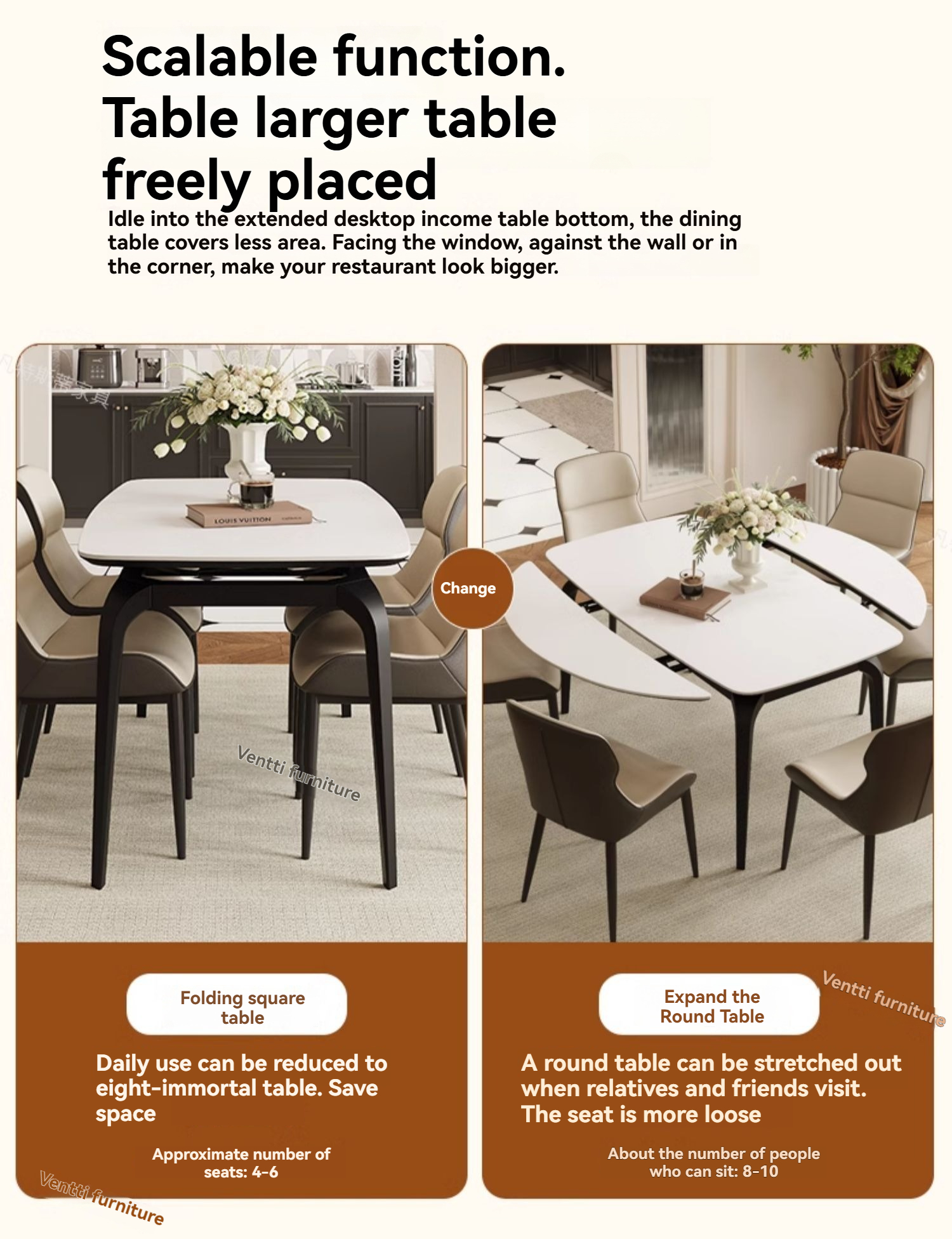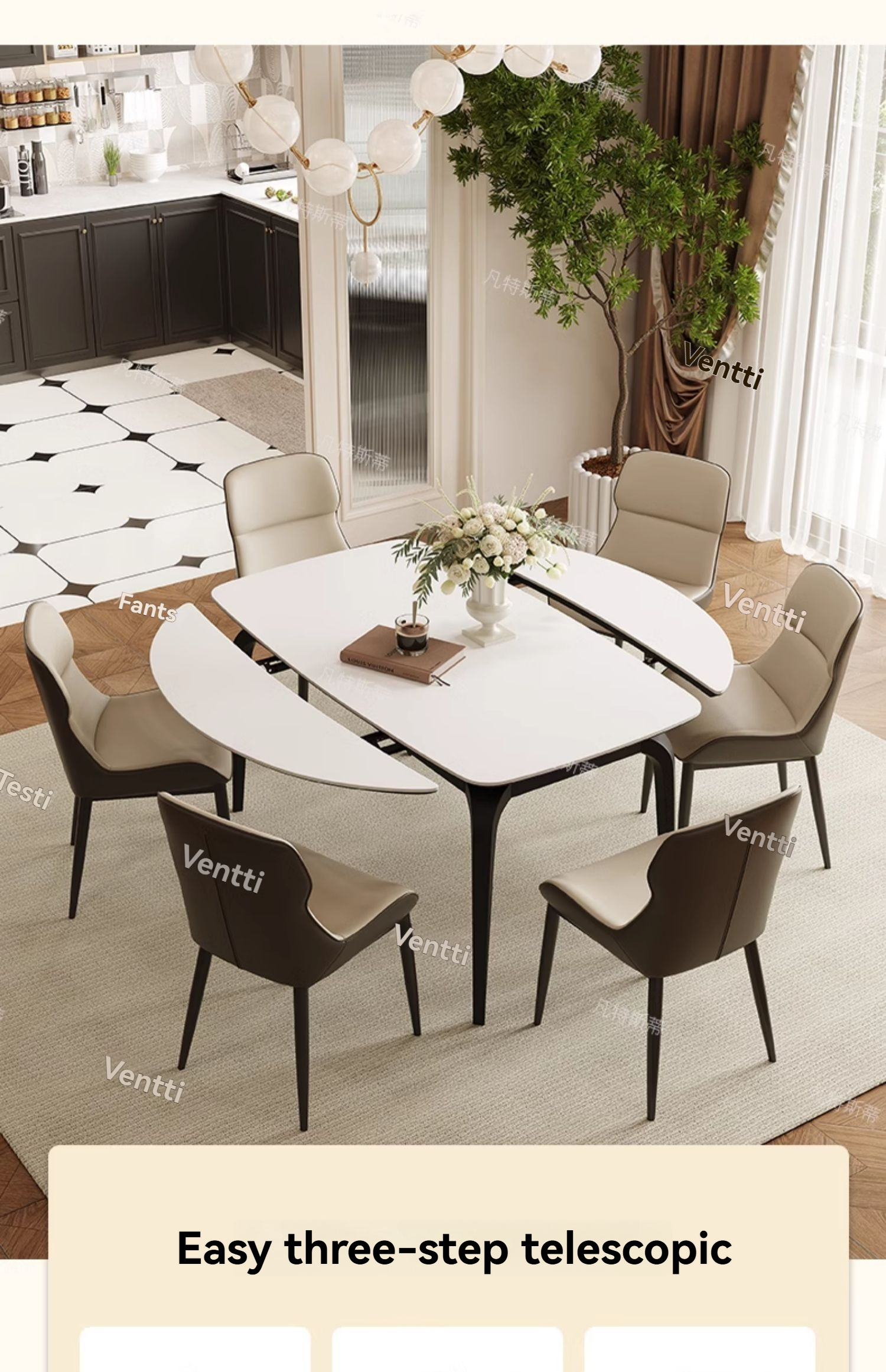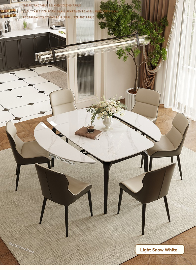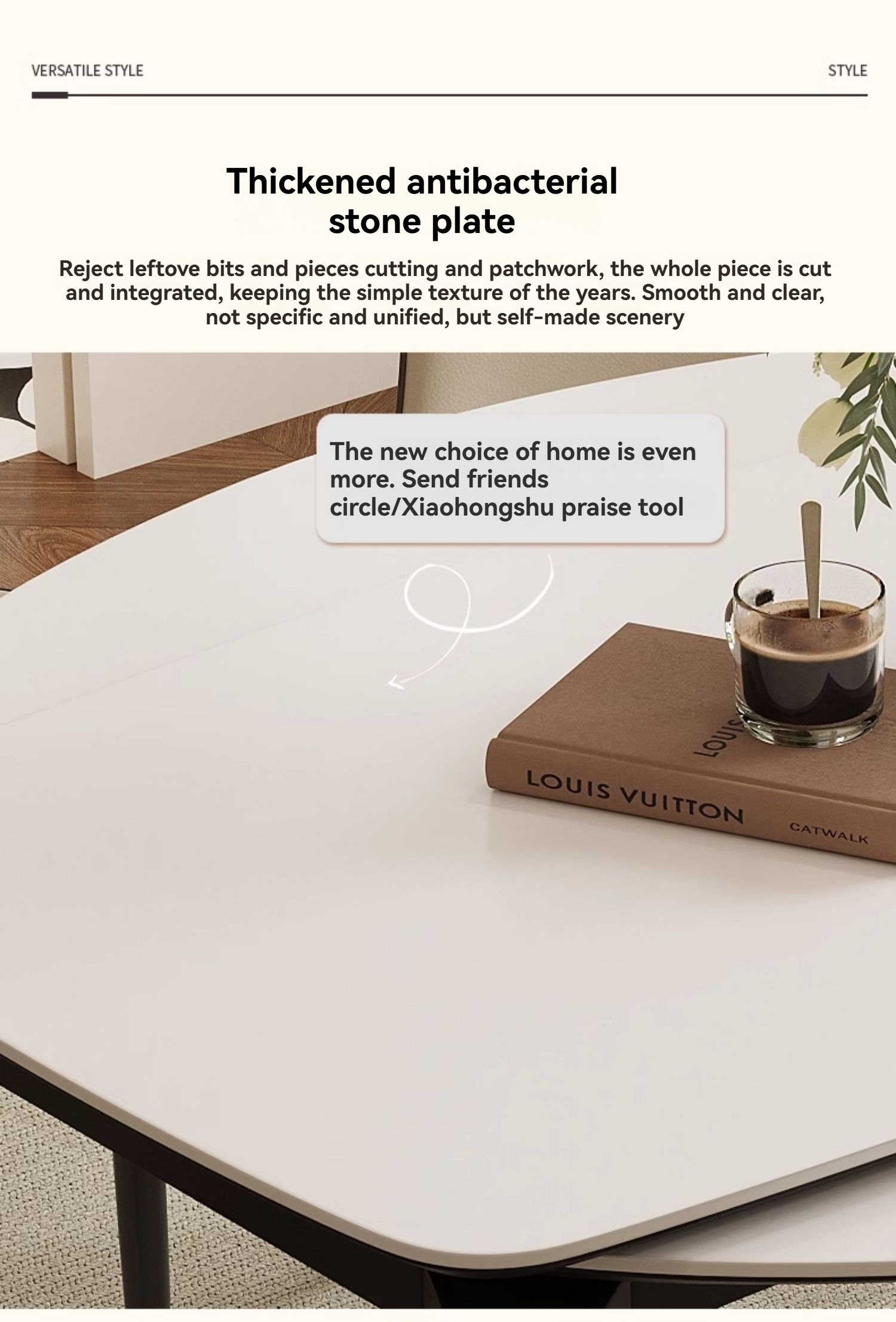 PRE-ORDER/BTO PACKAGE - A - DINING TABLE - Retractable rock plate dining table can be changed into a round shape, modern and simple.