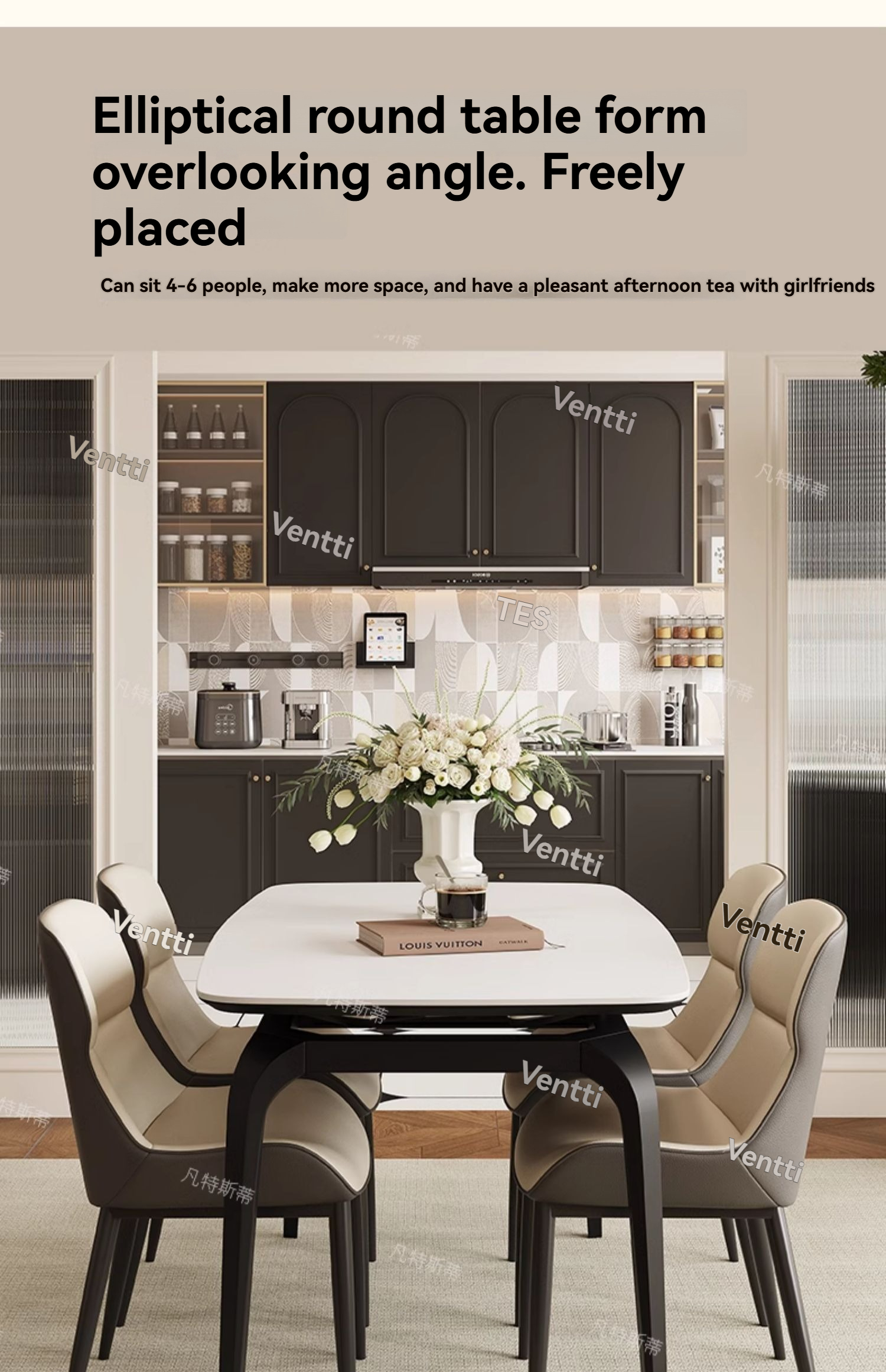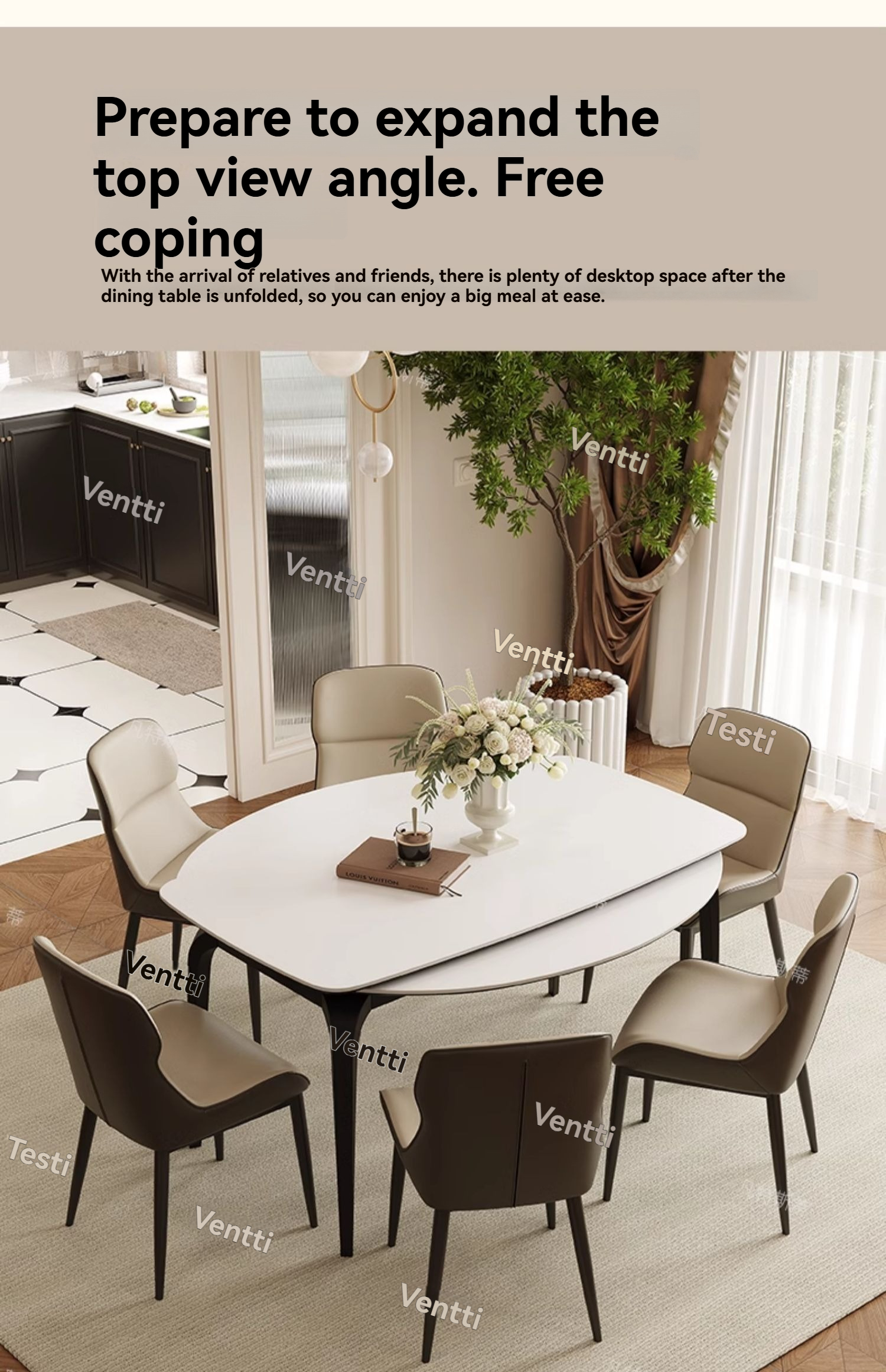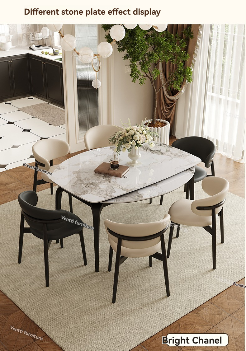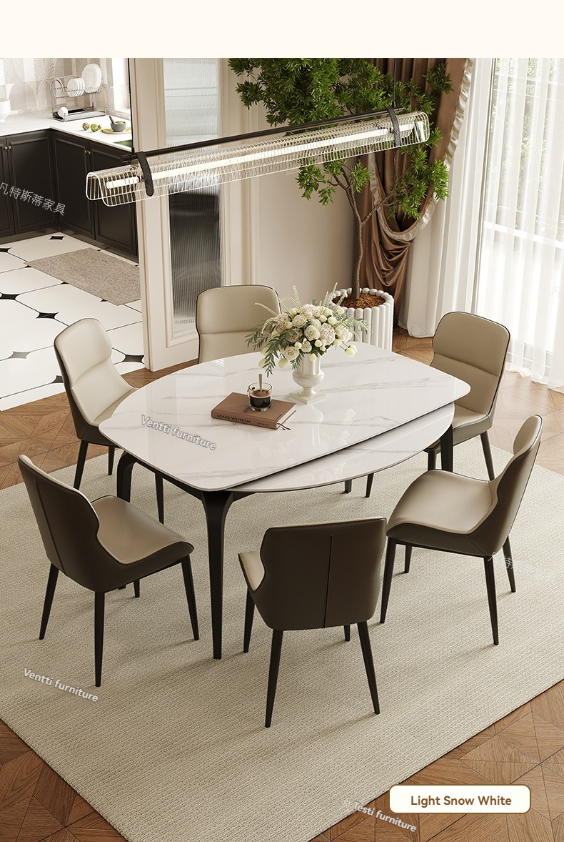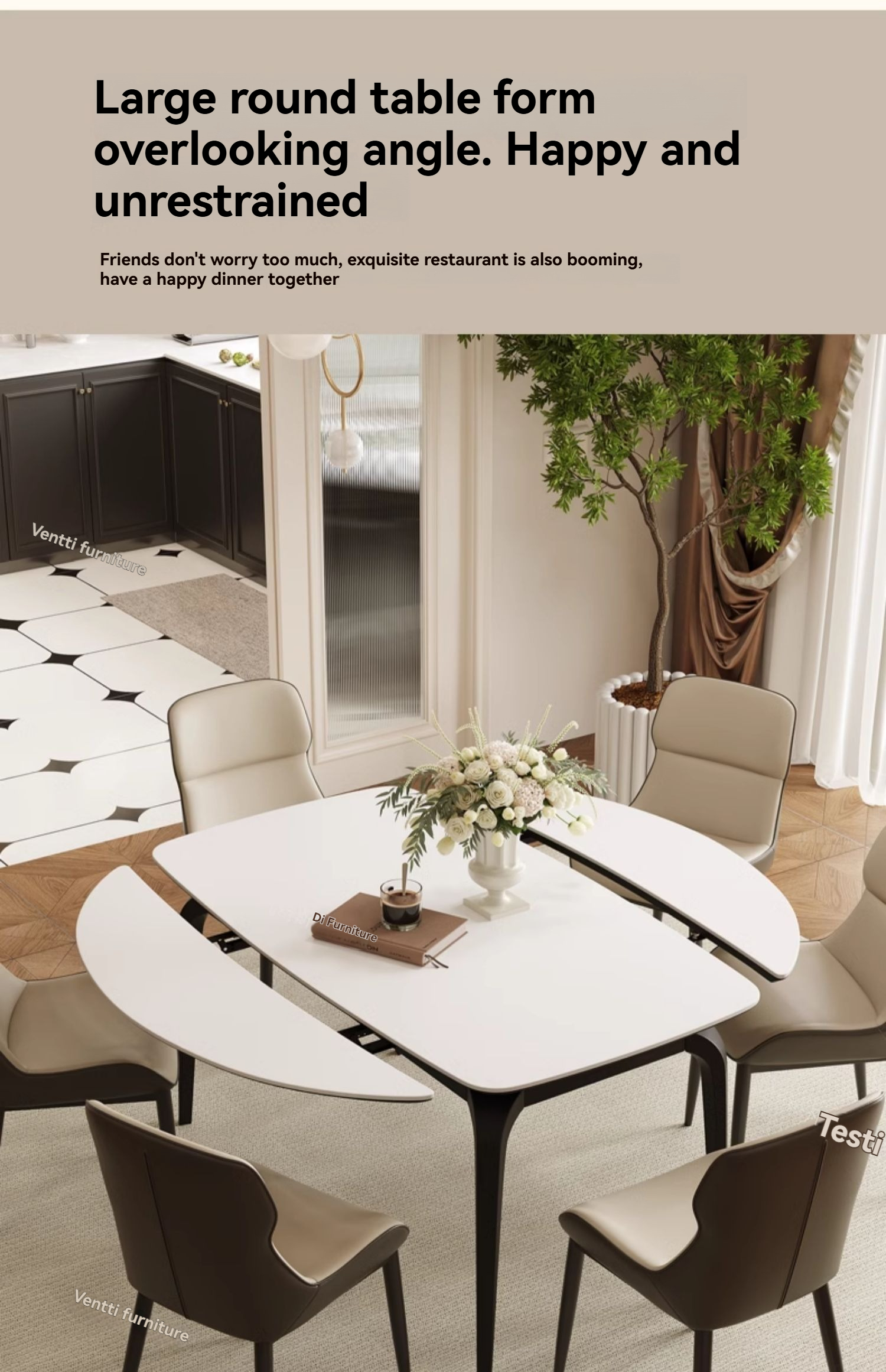 PRE-ORDER/BTO PACKAGE - A - DINING TABLE - Retractable rock plate dining table can be changed into a round shape, modern and simple.