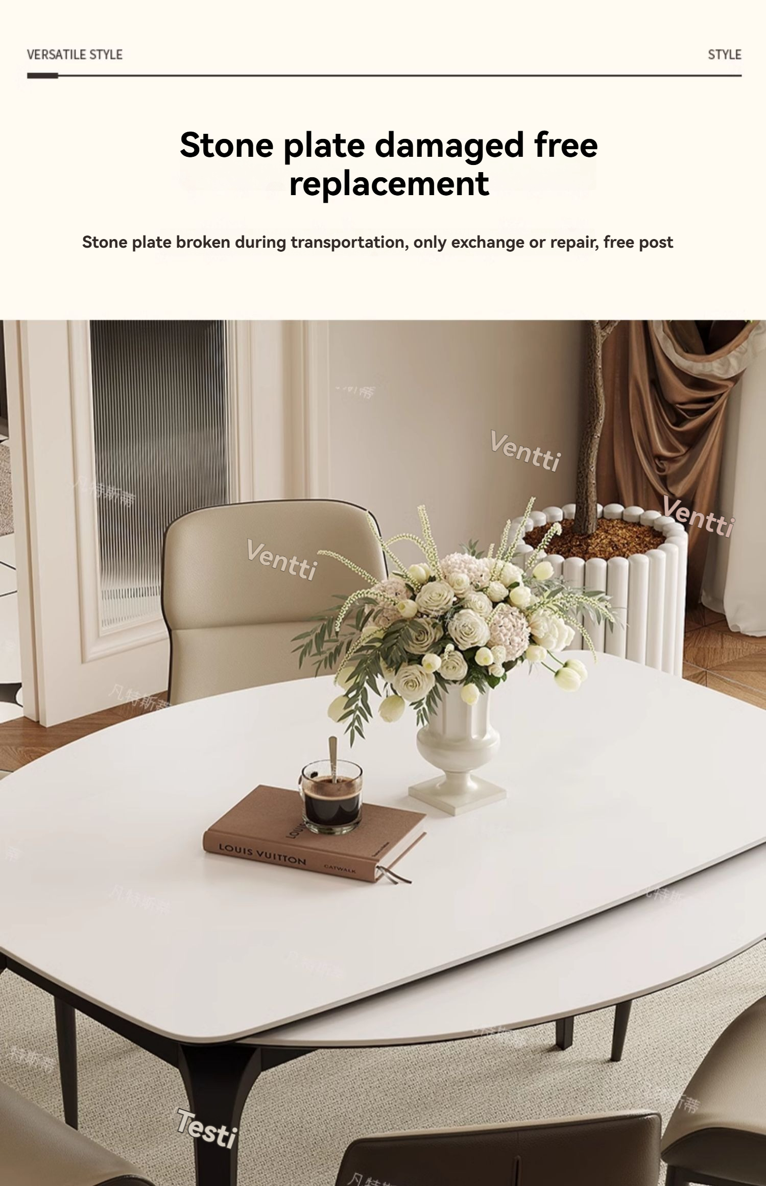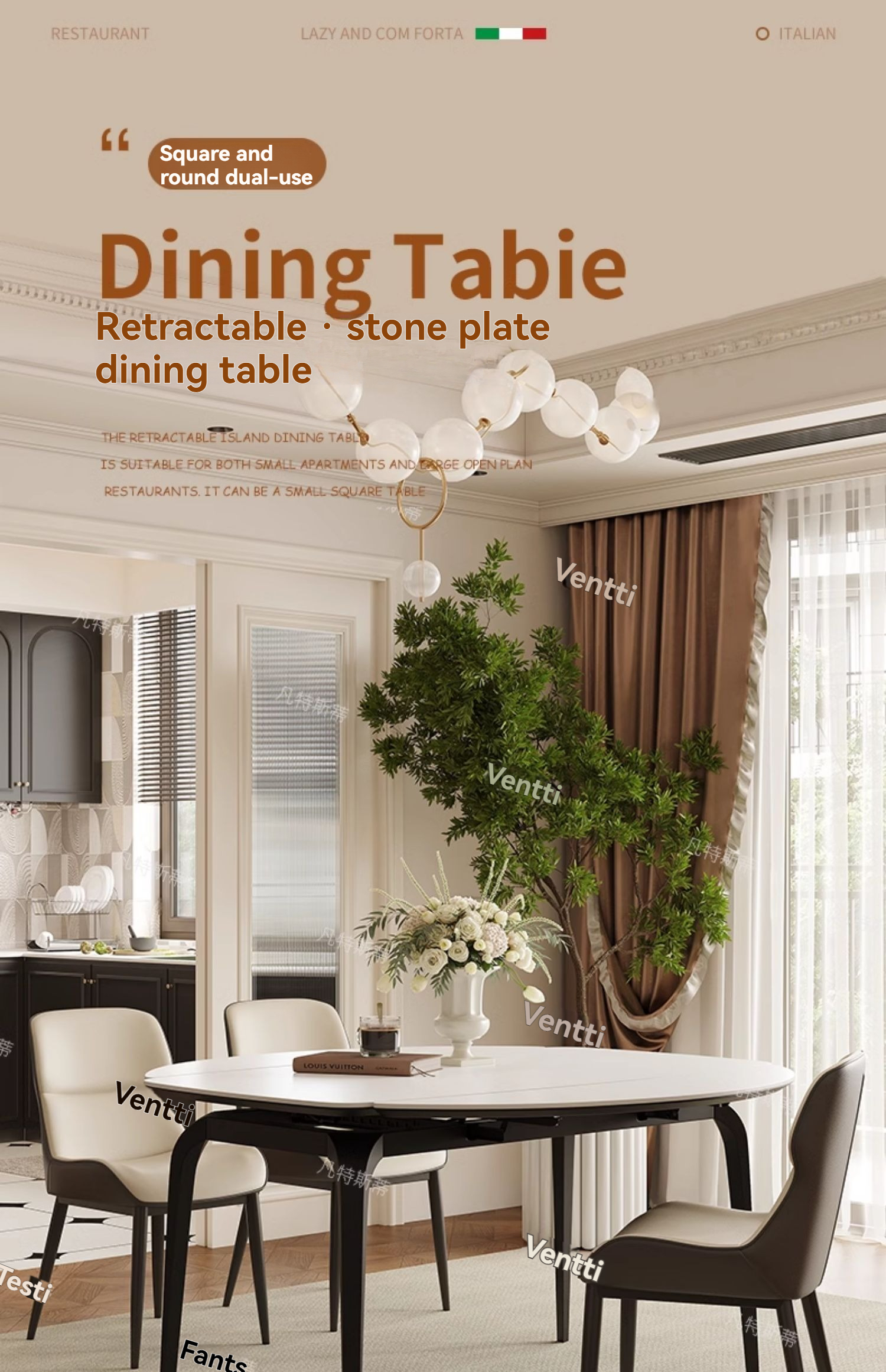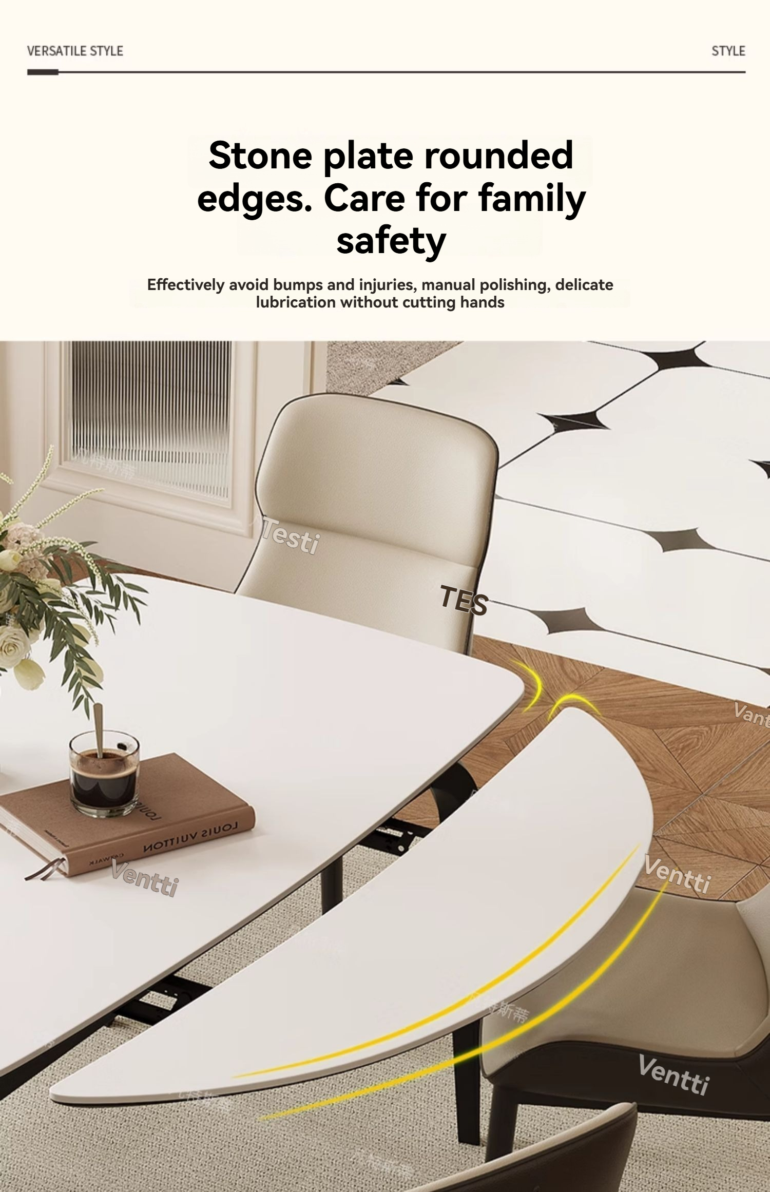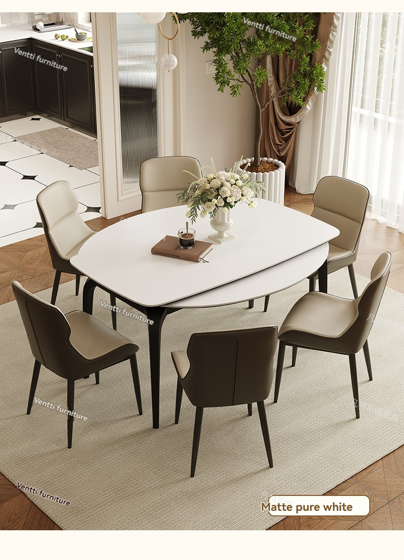 PRE-ORDER/BTO PACKAGE - A - DINING TABLE - Retractable rock plate dining table can be changed into a round shape, modern and simple.