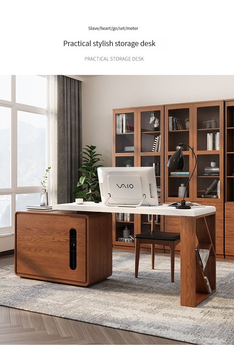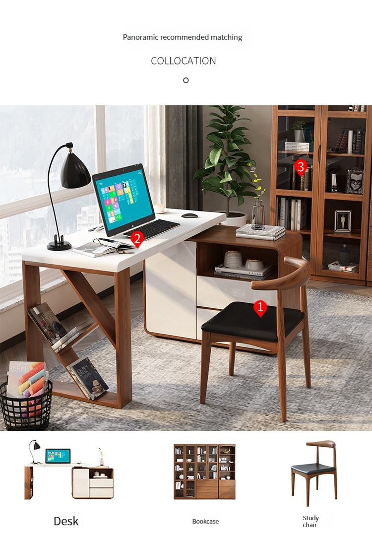 - Walnut: 1.4m computer desk with chassis slot (#2033) + Horn chair