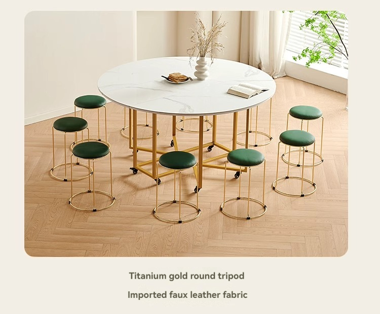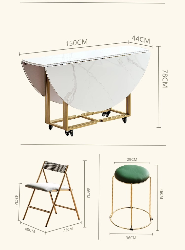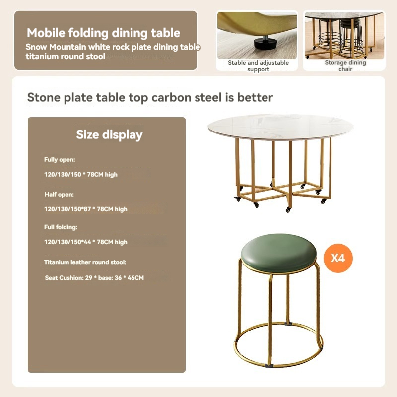 Snow White Slate Folding Round Table + Round Stools*4, Folding Chairs*8, Folding Chairs in Carbon Steel