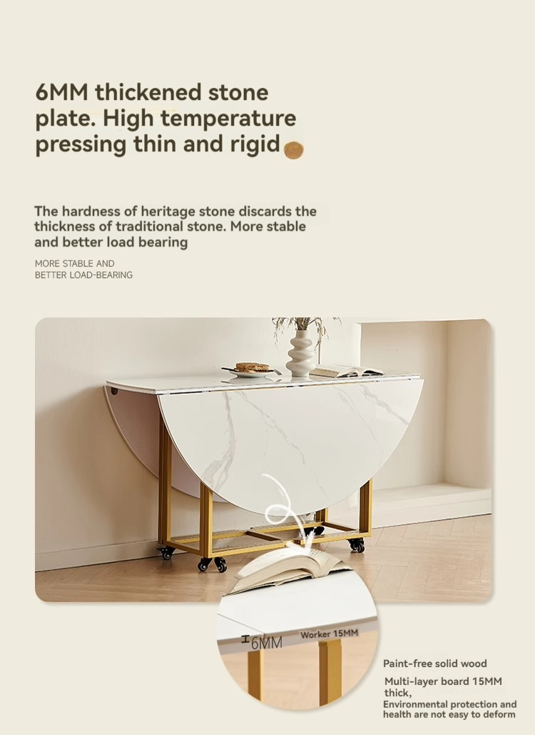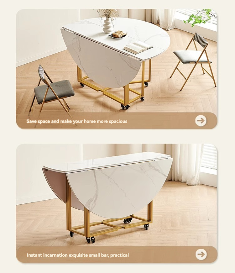 Snow white rock plate folding round table,