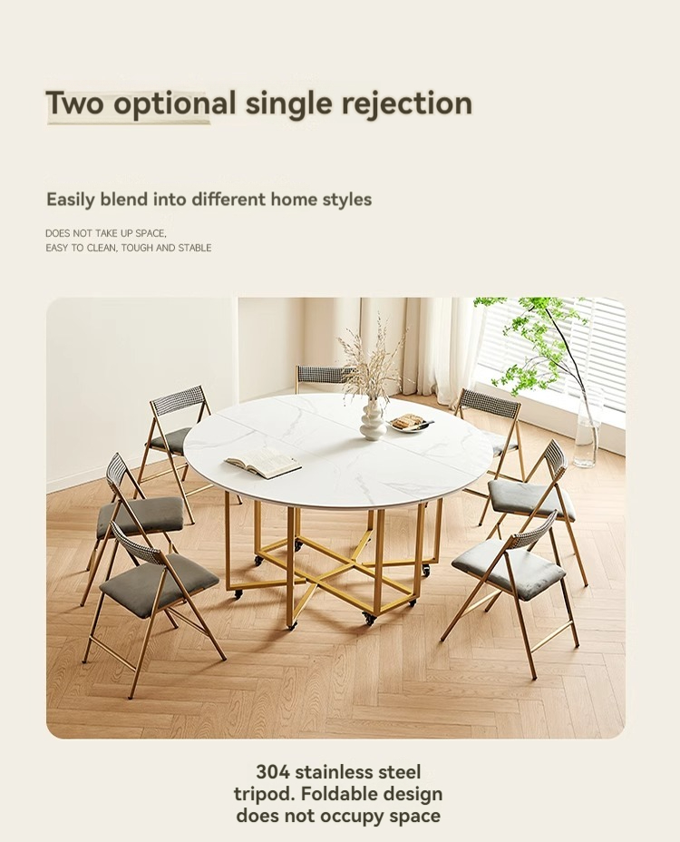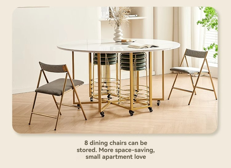 Snow White Slate Folding Round Table + Carbon Steel Folding Chairs*10, Folding Chairs*7, Folding Chairs*8, Folding Chairs*9