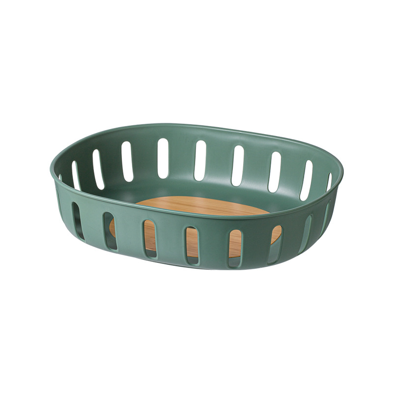 【Introduction】: Fruit drain baskets are made of high-quality PP and PS materials. 3 colors are available, fresh colors, wood grain stitching, simple and stylish. Large capacity design, can be used for daily cleaning and storage of fruits and vegetables. There is a drain layer inside, which drains the water to collect water and does not wet the countertop. Hollow out and ventilated, fruit and vegetable snacks are breathable and dry. The drain layer is removable for easy pouring and cleaning. High-quality imitation wood grain, no mold or cracking, draining and storage,